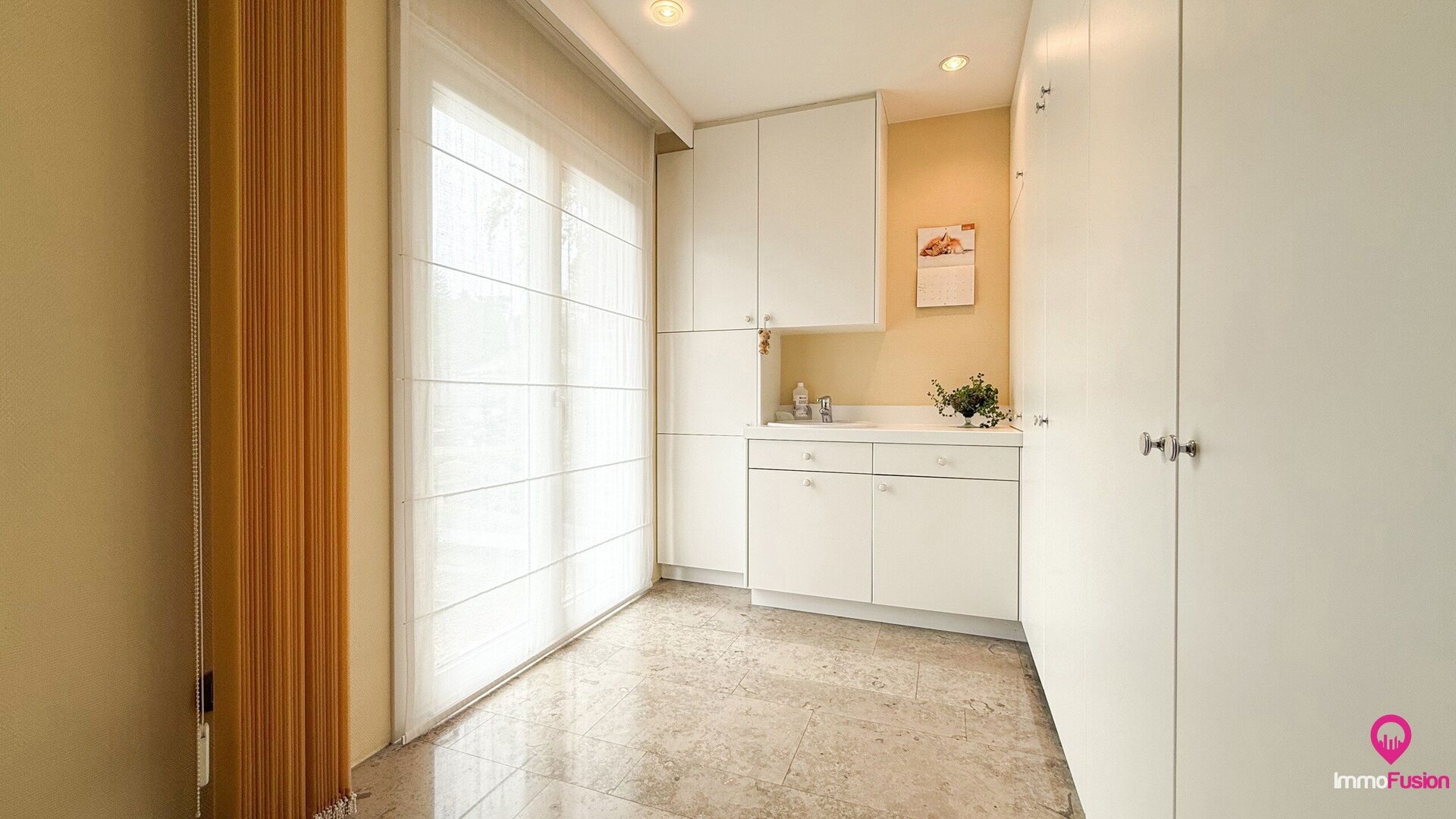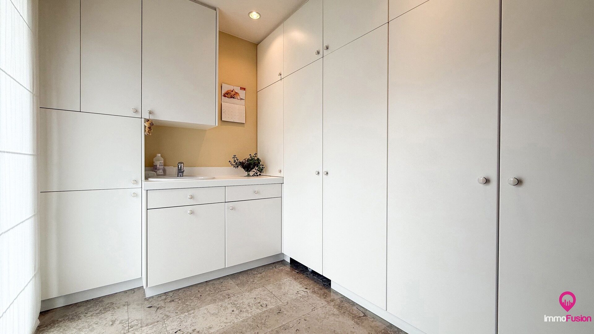 Op het gelijkvloers vindt u een ruime inkomhal, een lichtrijke woonkamer, keuken, een slaapkamer, een badkamer, een bureauruimte en een praktische wasplaats. Vanuit de woning heeft u toegang tot een prachtig terras, ideaal om tijdens de zomermaanden van het buitenleven te genieten.