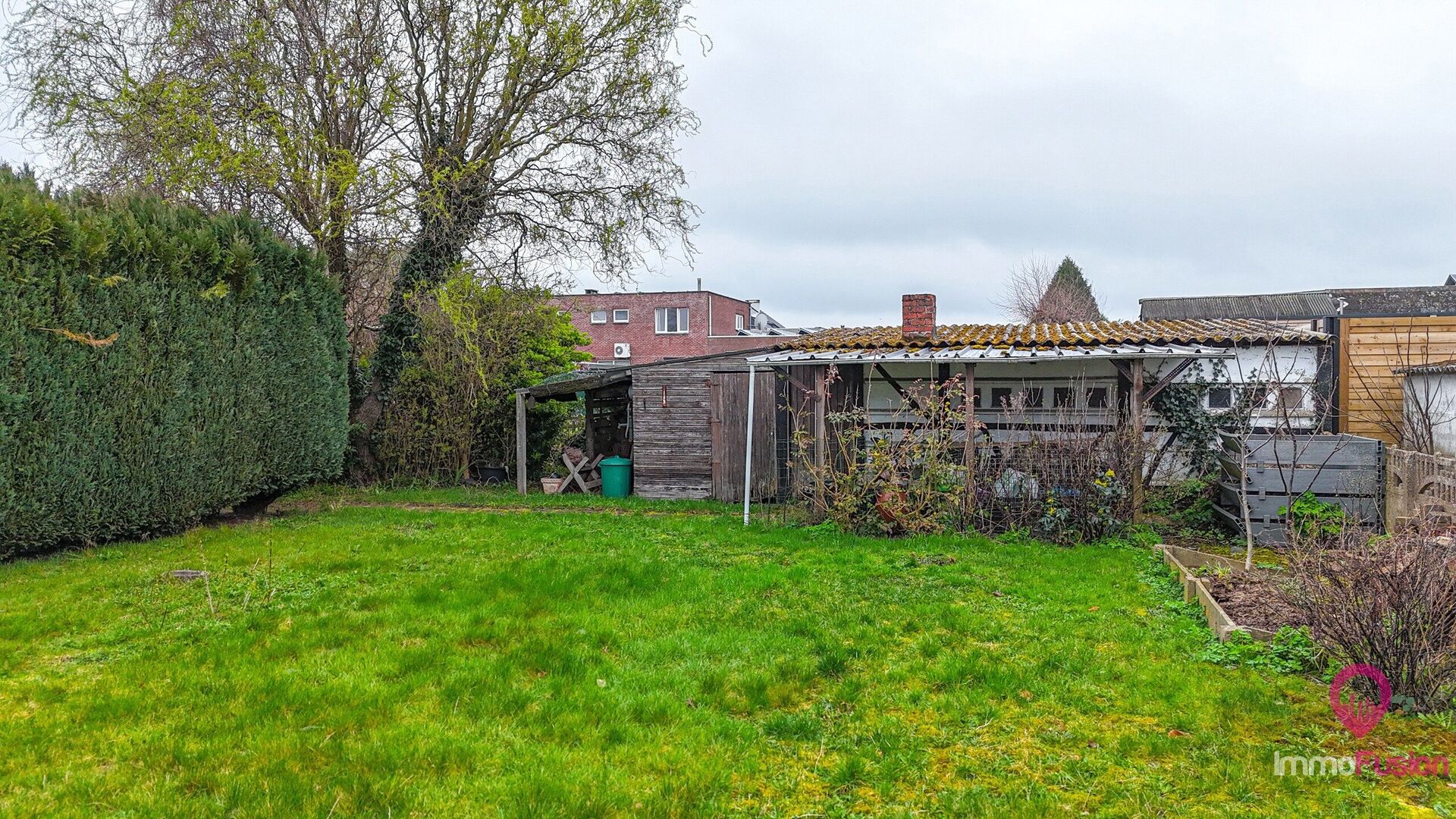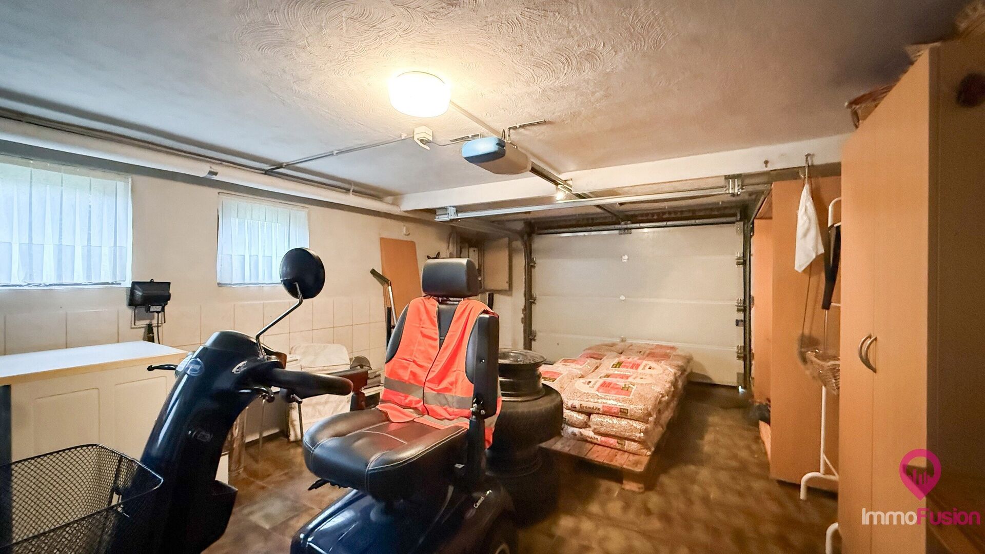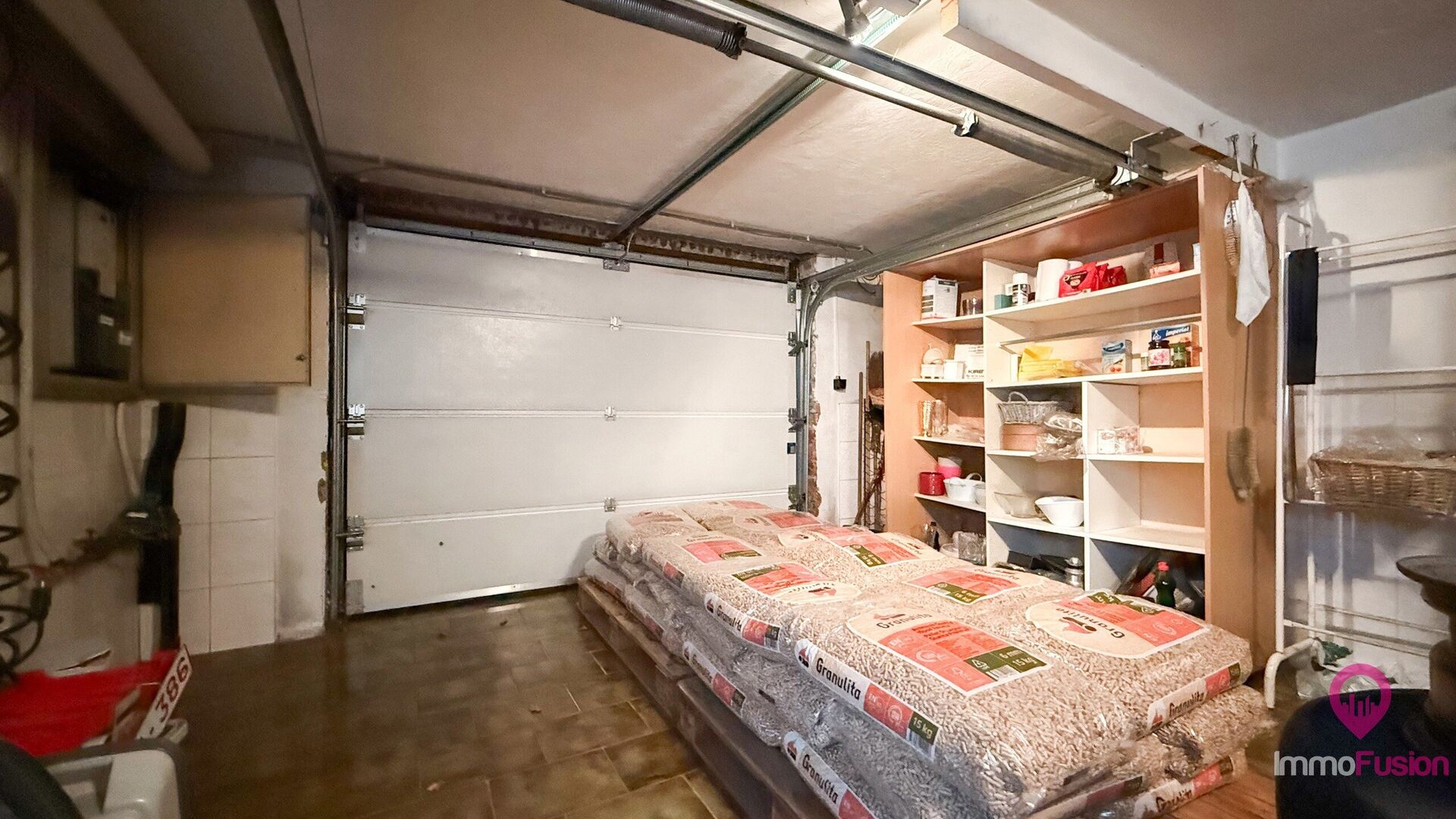 Ook aan bergruimte is hier geen gebrek. De woning beschikt over een ruime garage met daarachter nog een extra opbergruimte, ideaal als werkruimte, hobbyruimte of stockage. Tot slot is er een grote oprit met voldoende parkeergelegenheid.