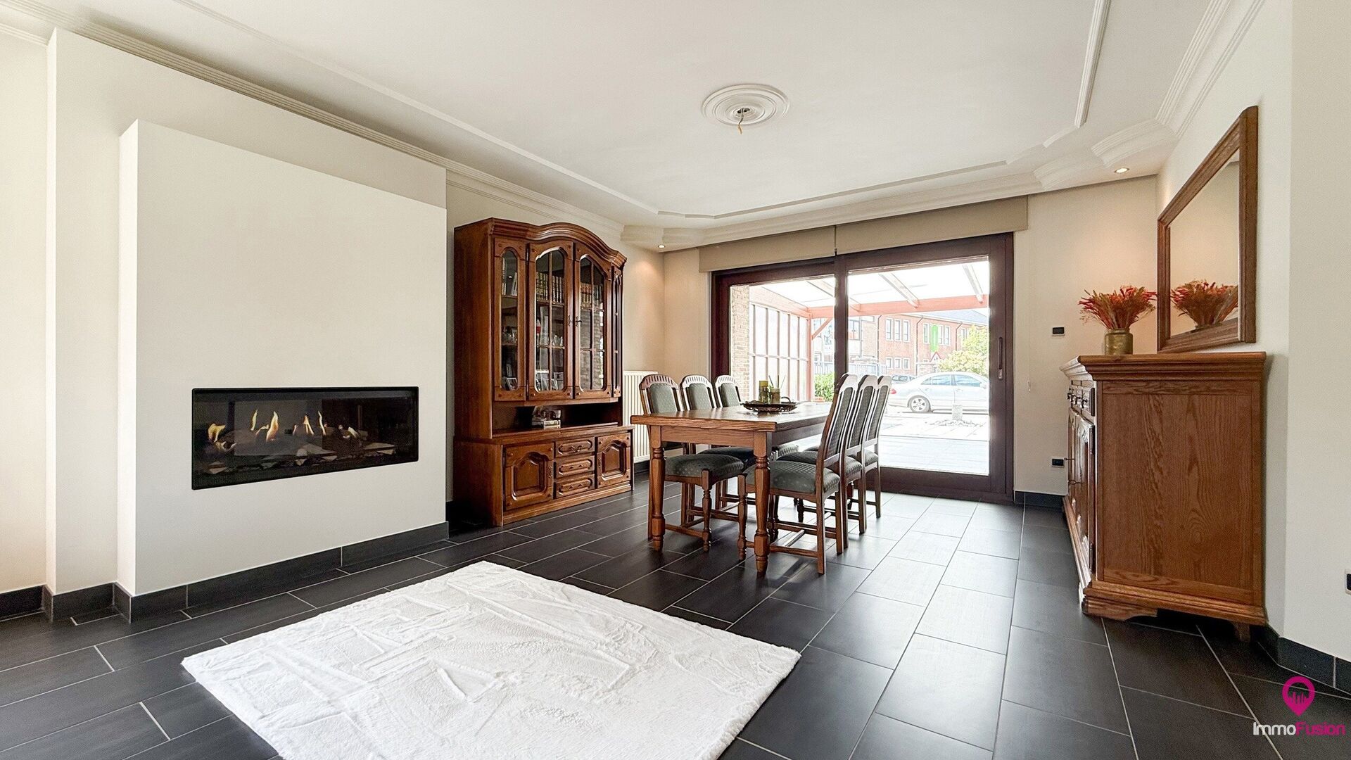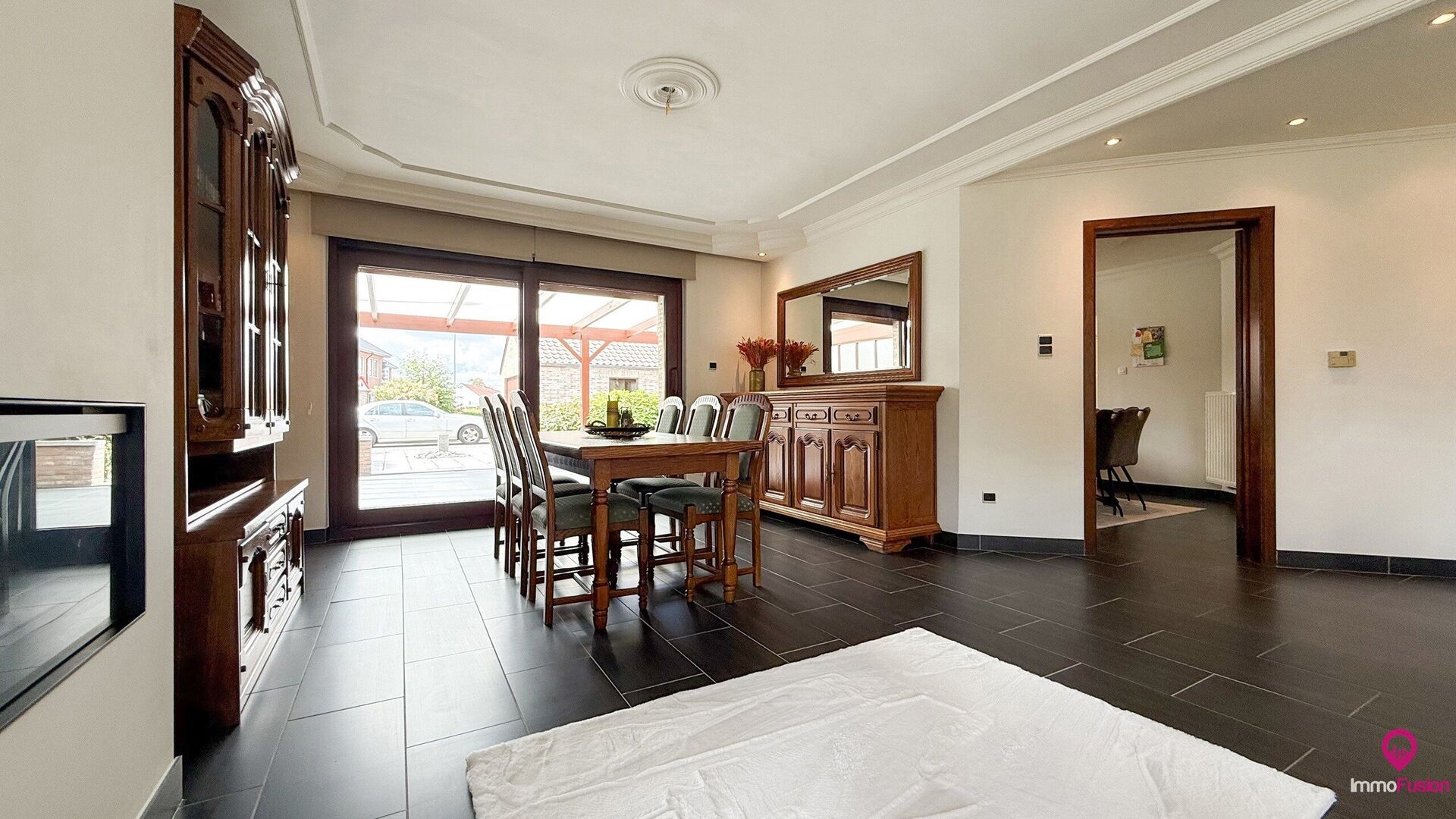 Bij binnenkomst via de inkomhal ervaar je meteen dat dit punt toegang geeft tot de verschillende ruimtes van de woning. Aan de linkerzijde van de inkomhal bevindt zich de lichtrijke living met gezellige gashaard en aansluitend de eetruimte, die dankzij het schuifraam meteen toegang geeft tot het terras.