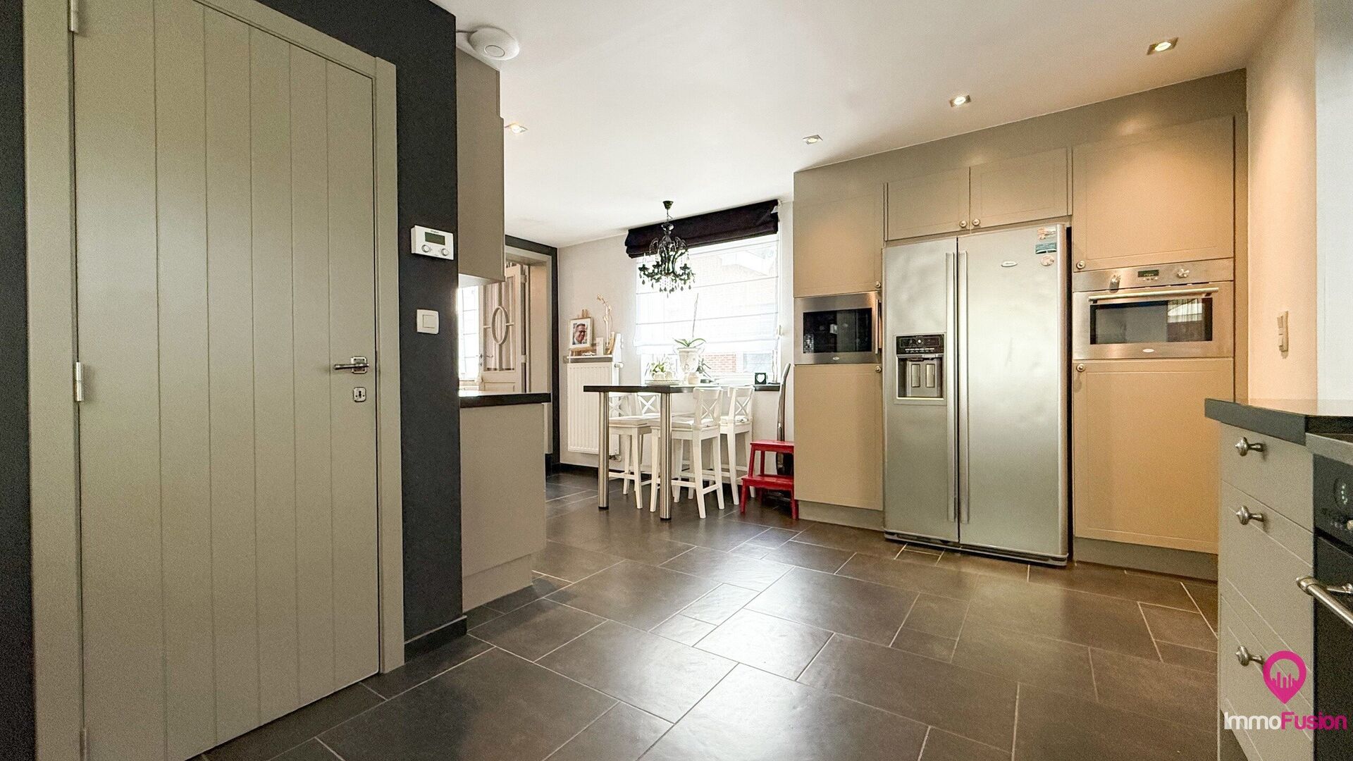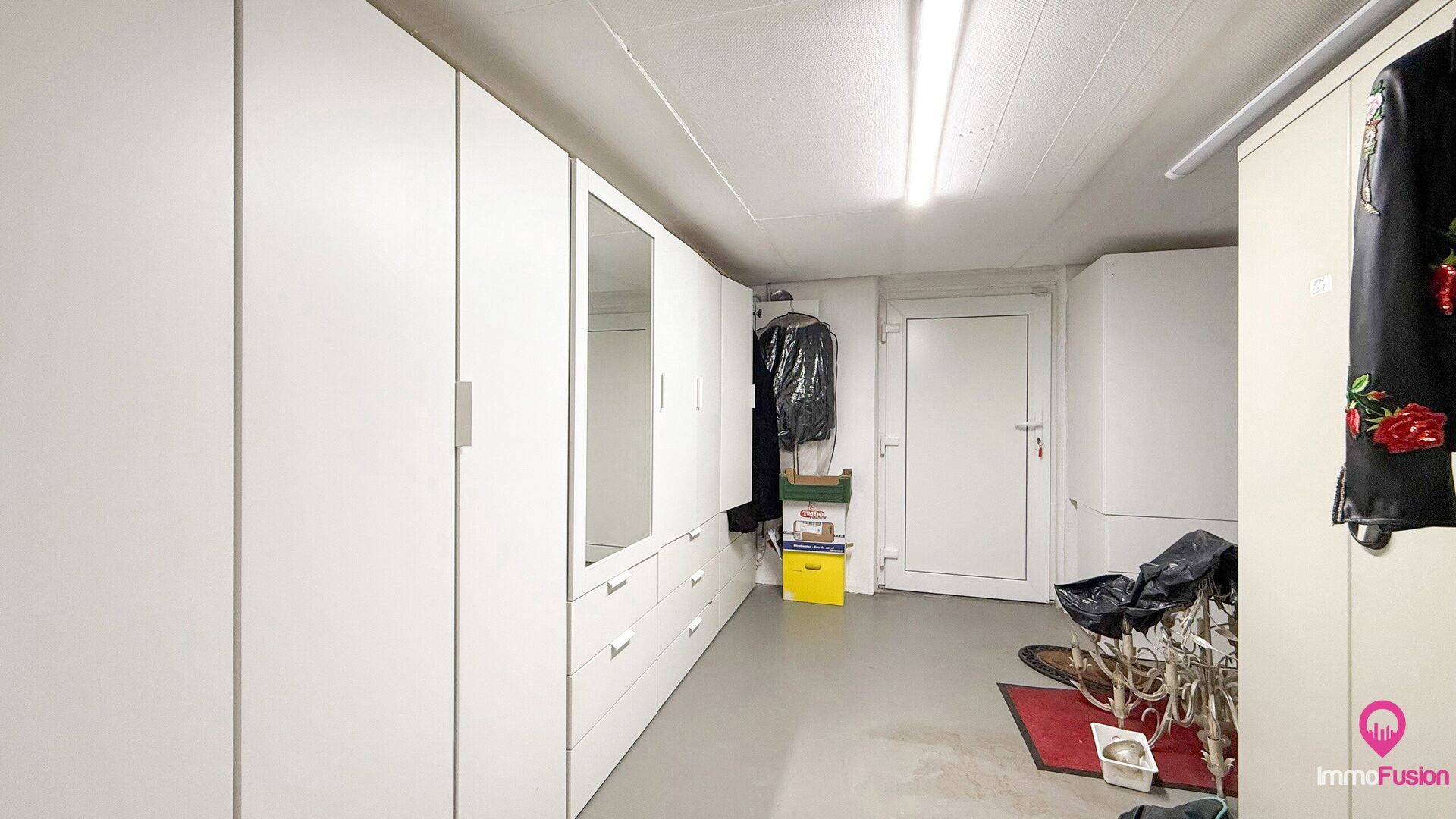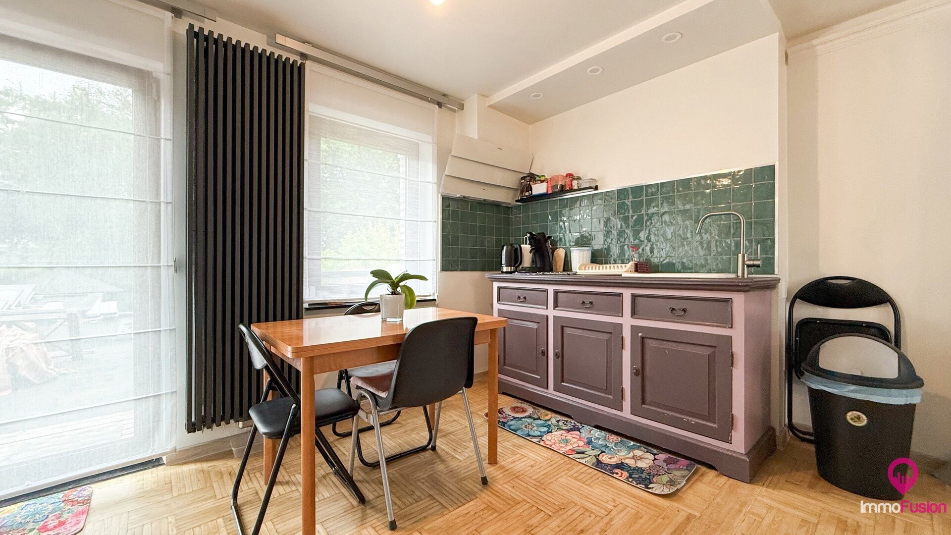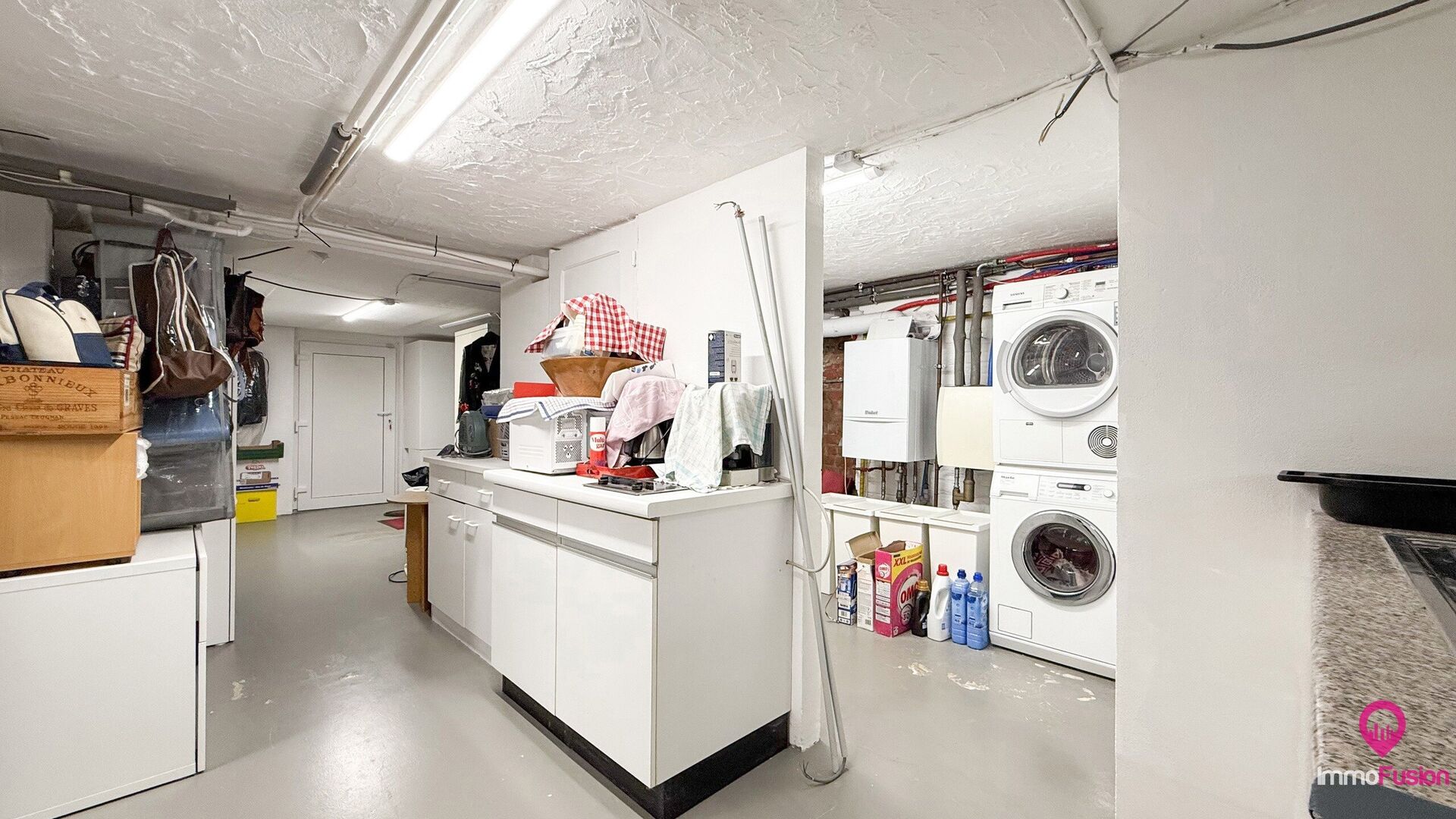 Vanuit deze ruimte wandel je door naar het hart van de woning: de open keuken met eetruimte en 2e woonkamer. Het is volledig uitgerust met een oven, fornuis, vaatwasser en heeft zelfs plaats voor een extra eettafel. Vanuit de keuken heb je toegang tot de veranda met uitzicht op de tuin en de trap naar de kelder. De kelder is netjes ingedeeld in verschillende ruimtes en het is groot genoeg om heel wat spullen in op te bergen. Hier bevindt zich momenteel ook de wasruimte.