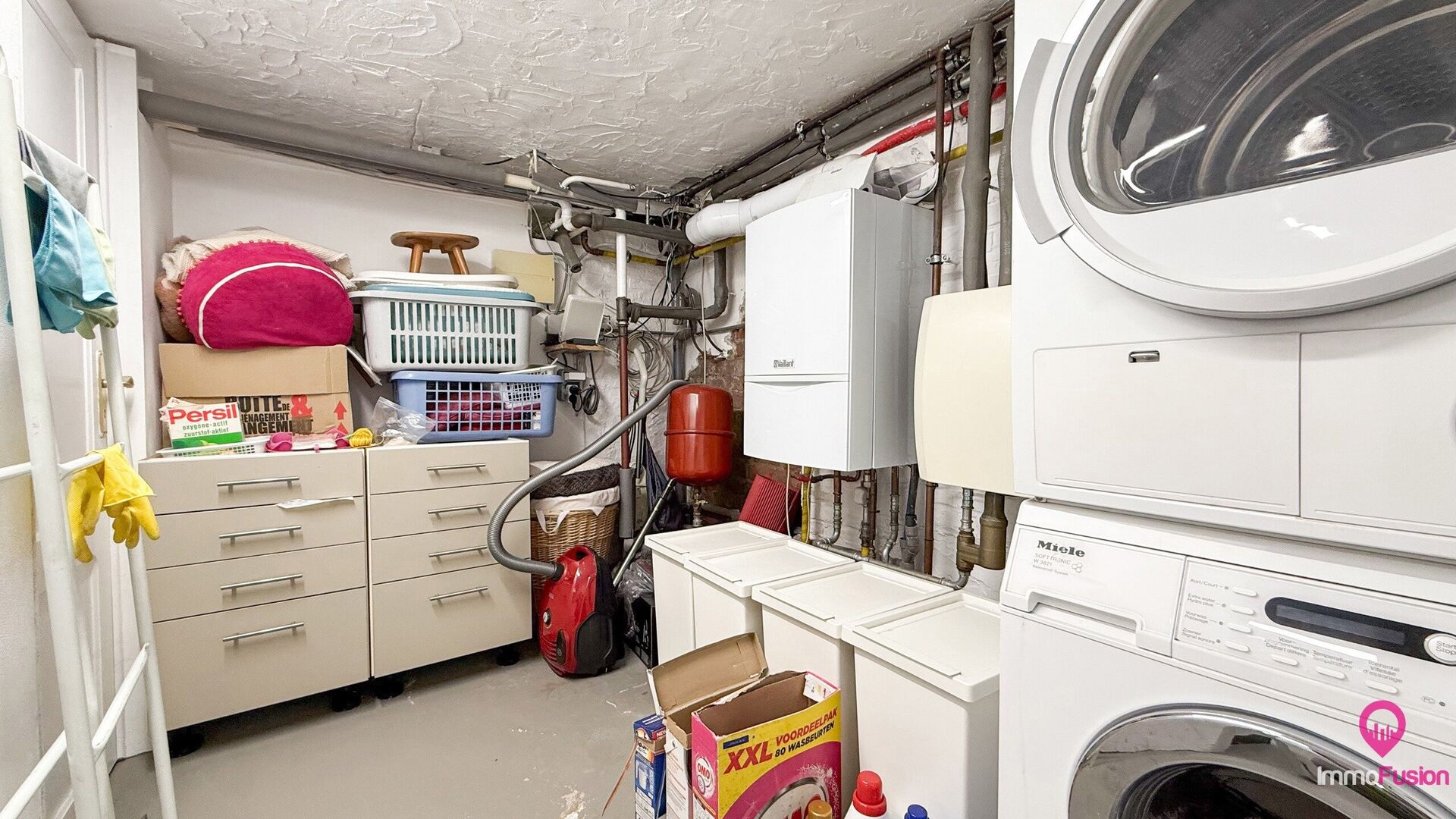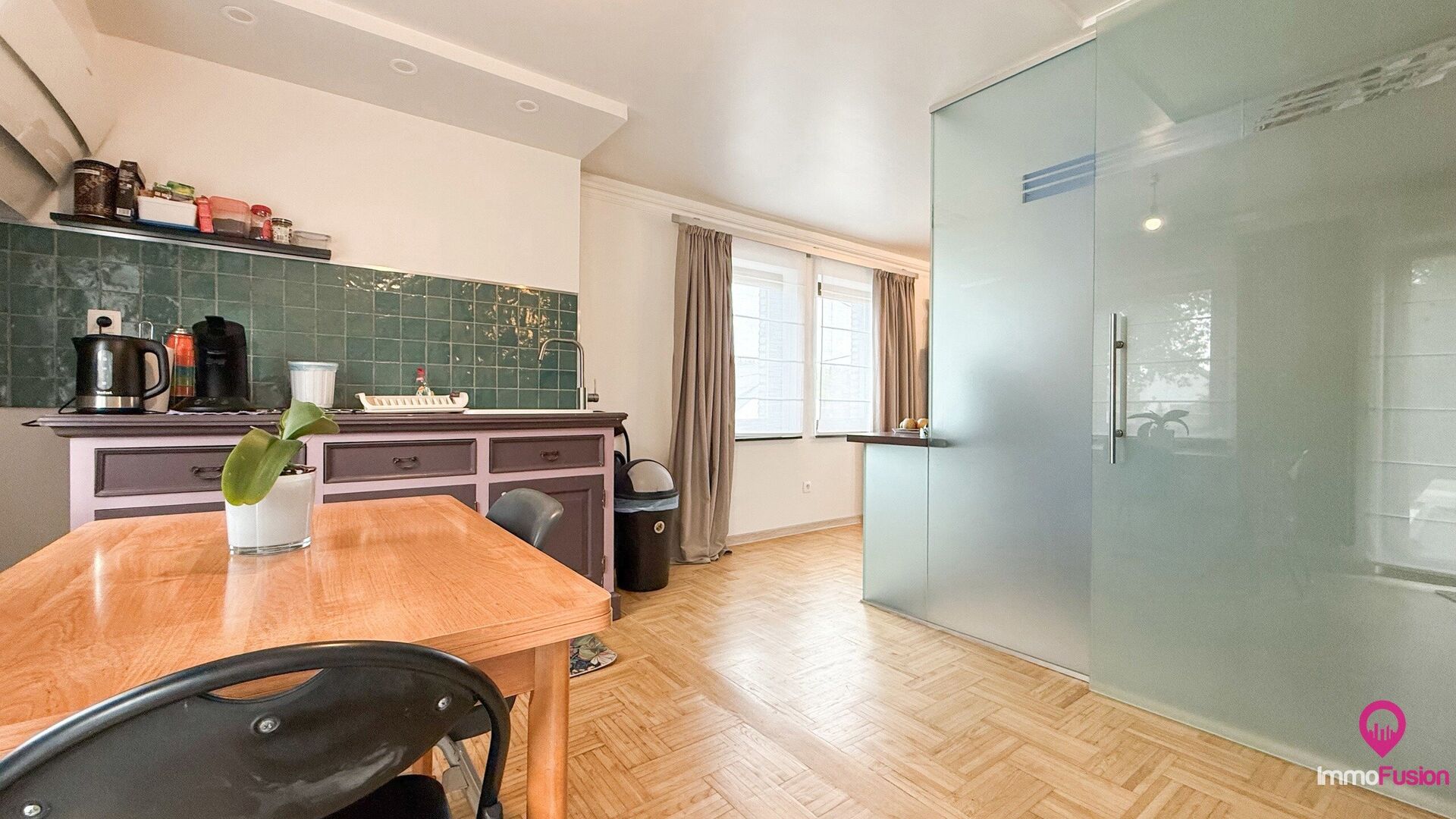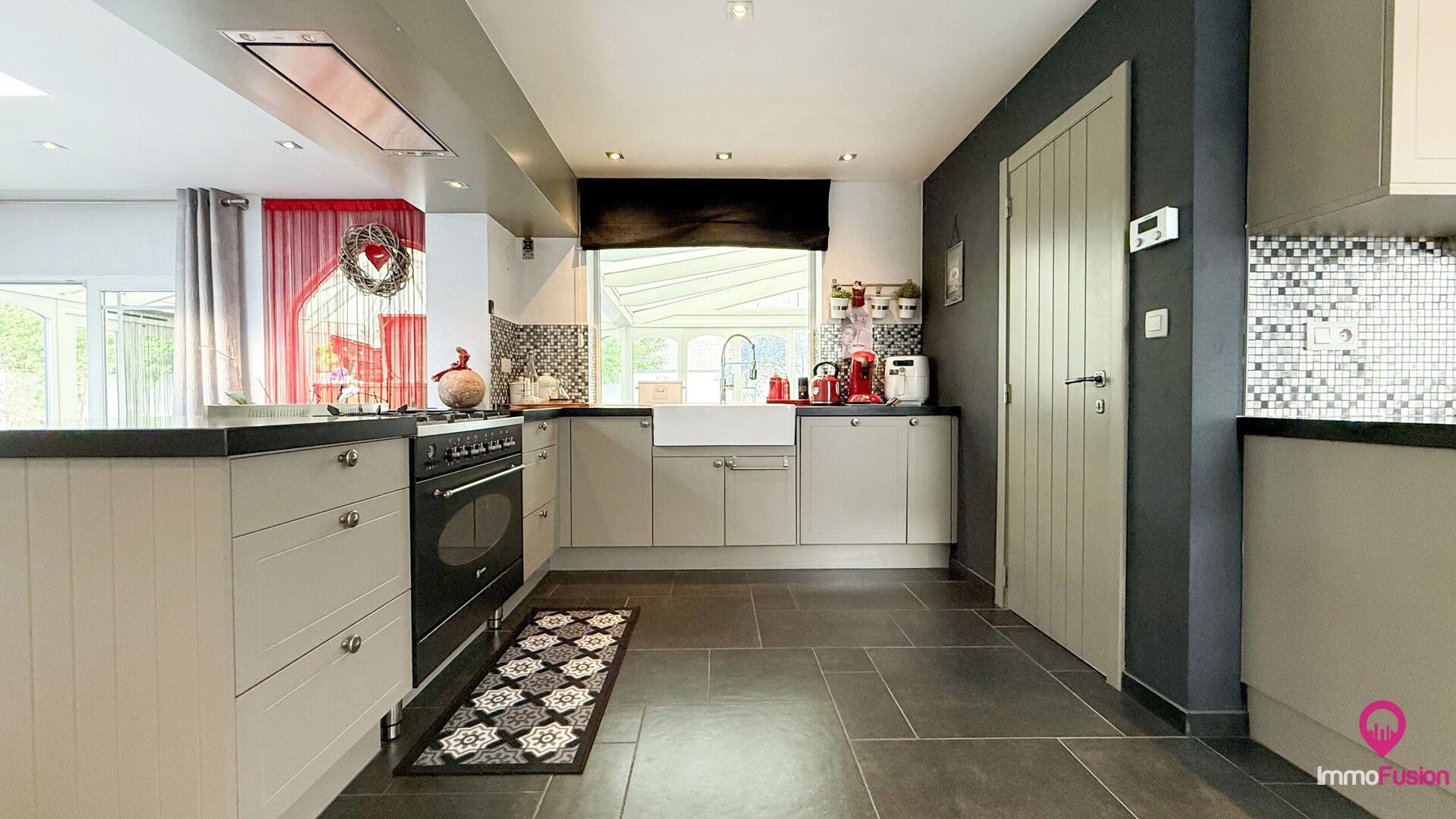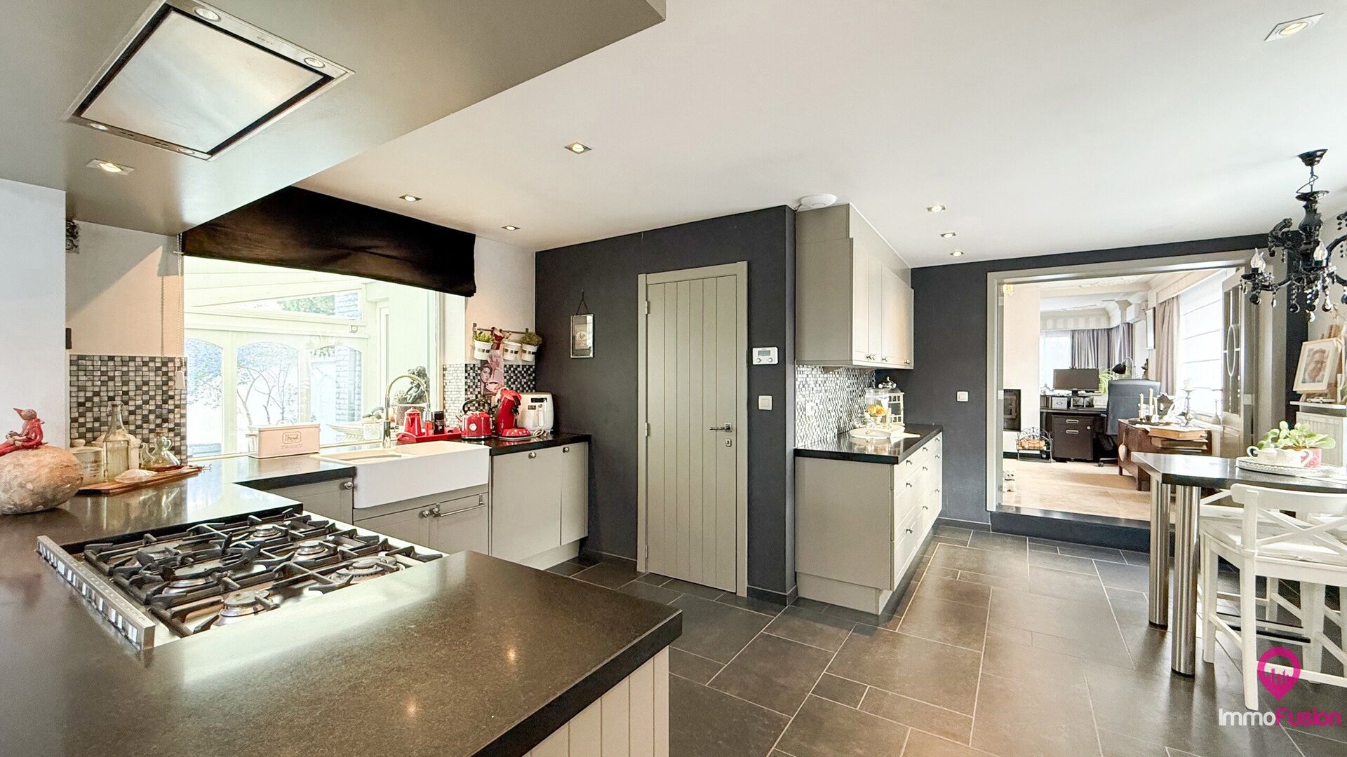 Vanuit deze ruimte wandel je door naar het hart van de woning: de open keuken met eetruimte en 2e woonkamer. Het is volledig uitgerust met een oven, fornuis, vaatwasser en heeft zelfs plaats voor een extra eettafel. Vanuit de keuken heb je toegang tot de veranda met uitzicht op de tuin en de trap naar de kelder. De kelder is netjes ingedeeld in verschillende ruimtes en het is groot genoeg om heel wat spullen in op te bergen. Hier bevindt zich momenteel ook de wasruimte.