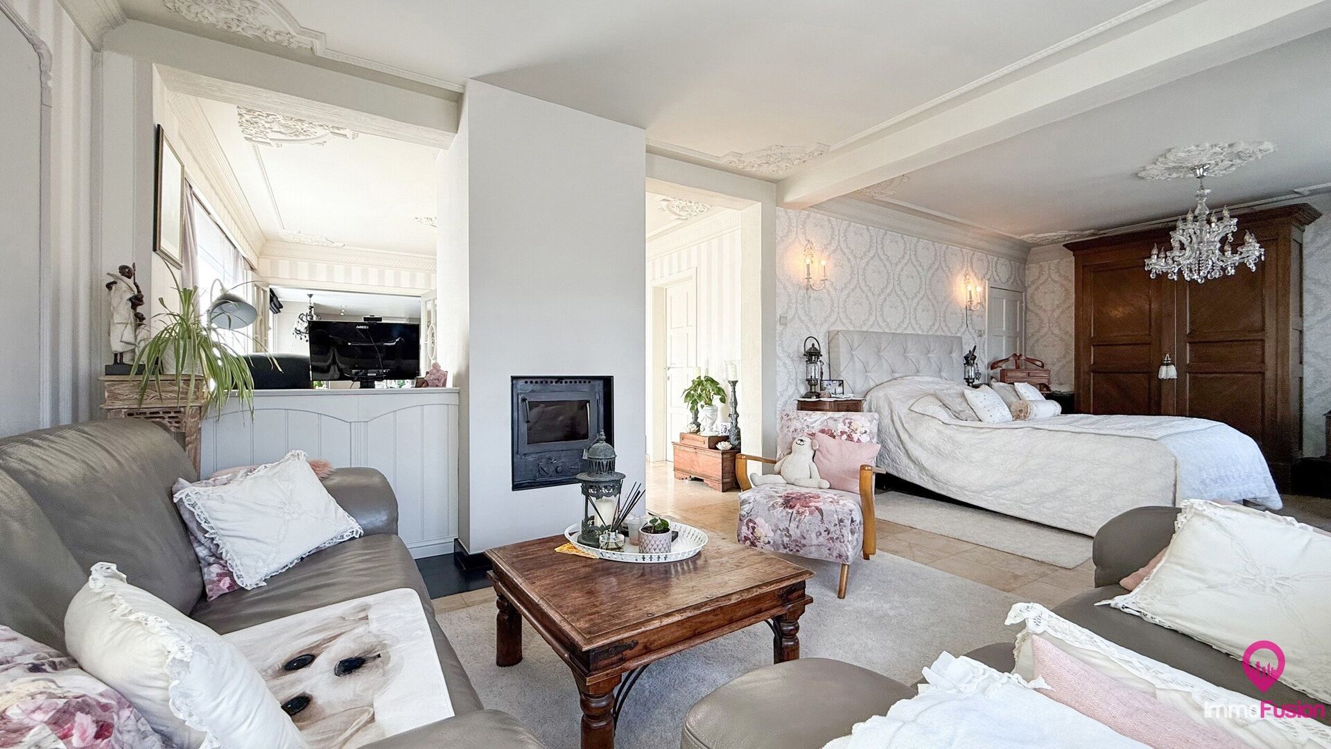 Op de eerste verdieping vinden we een zeer ruime (derde) slaapkamer, verbonden met een aparte badkamer die beschikt over een douche, twee wastafels en een apart toilet. Daarnaast is er een extra gezellige woonkamer en een praktische bijkeuken aanwezig.