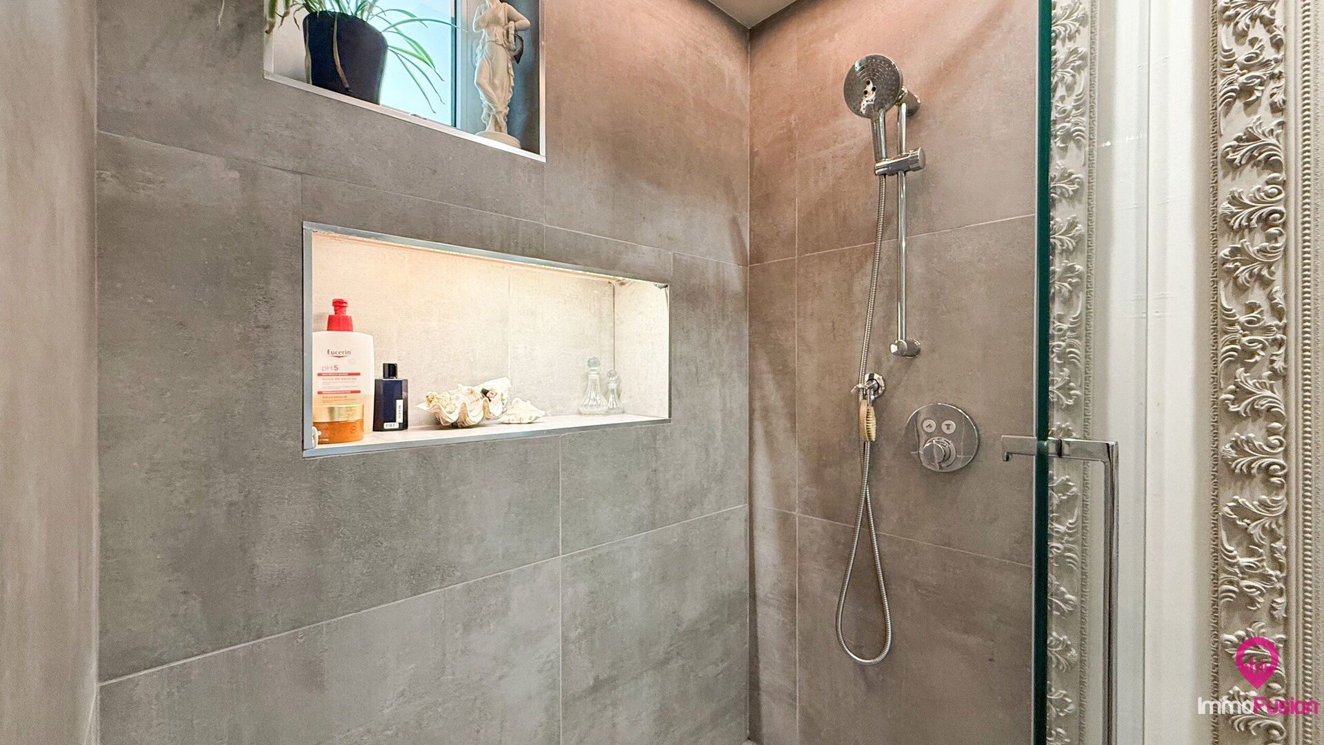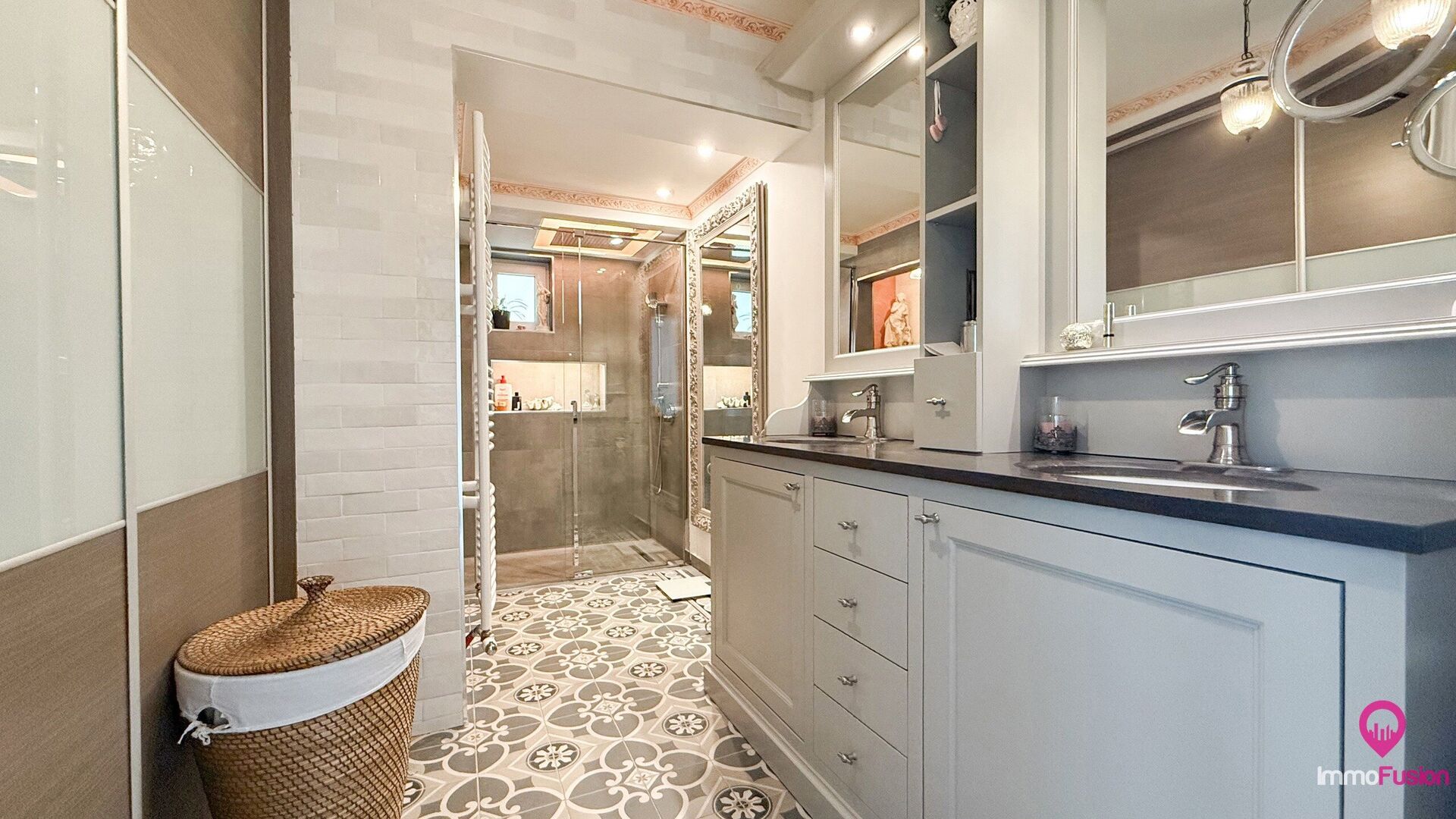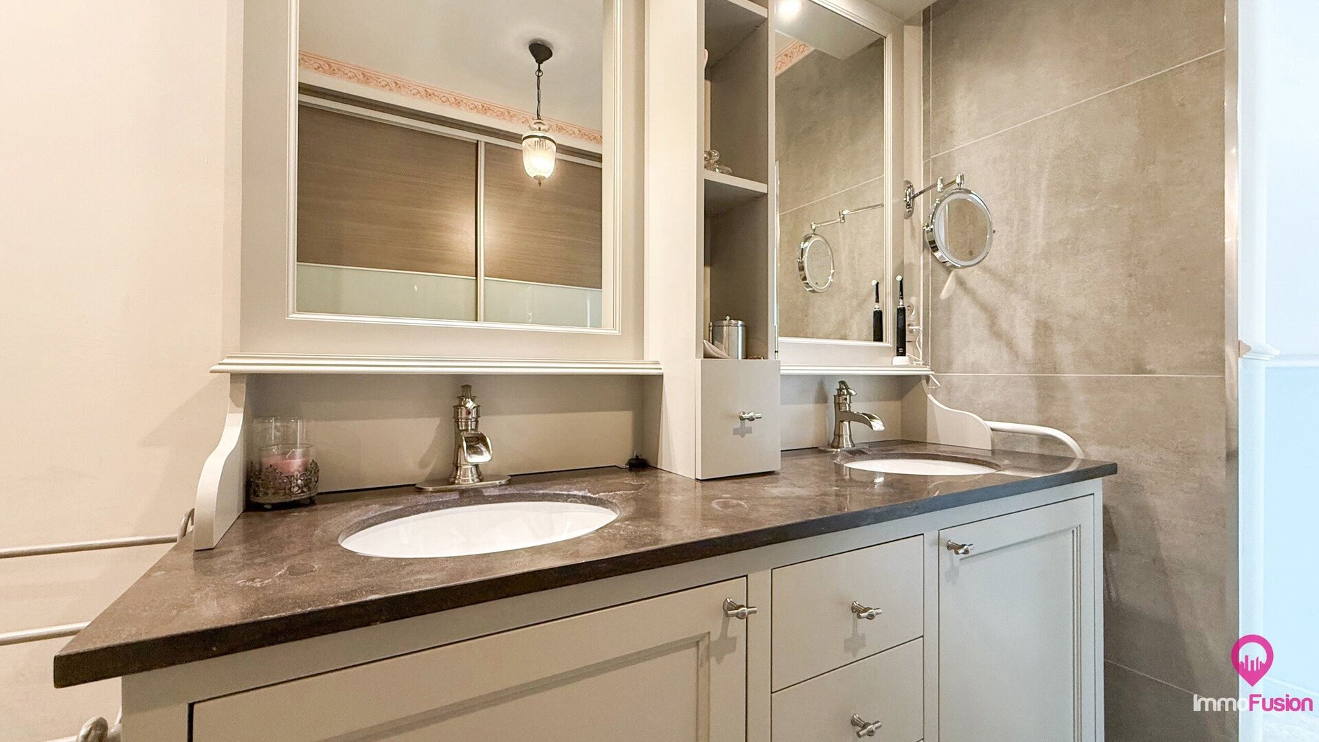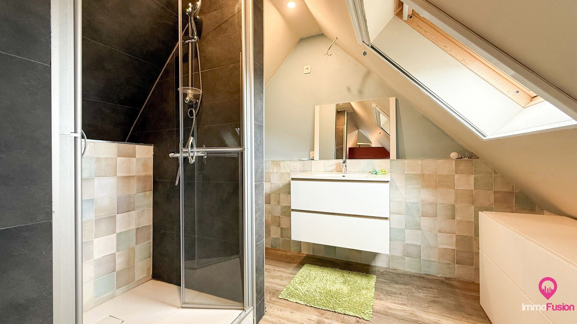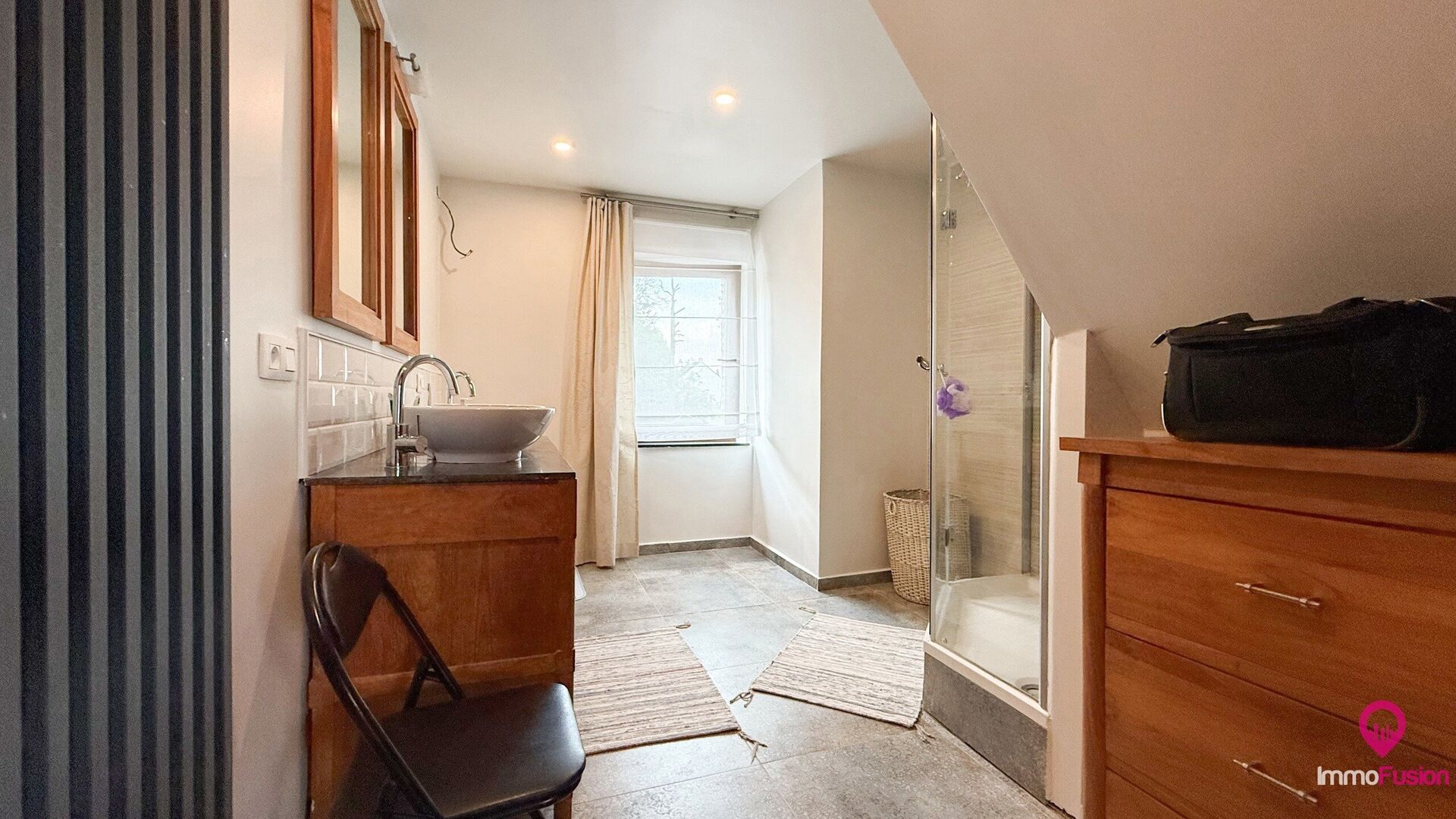 De zolder werd volledig ingericht als vierde slaapkamer en beschikt over een derde badkamer met douche, wastafel en toilet. Ideaal te gebruiken als bijvoorbeeld een logeerkamer.