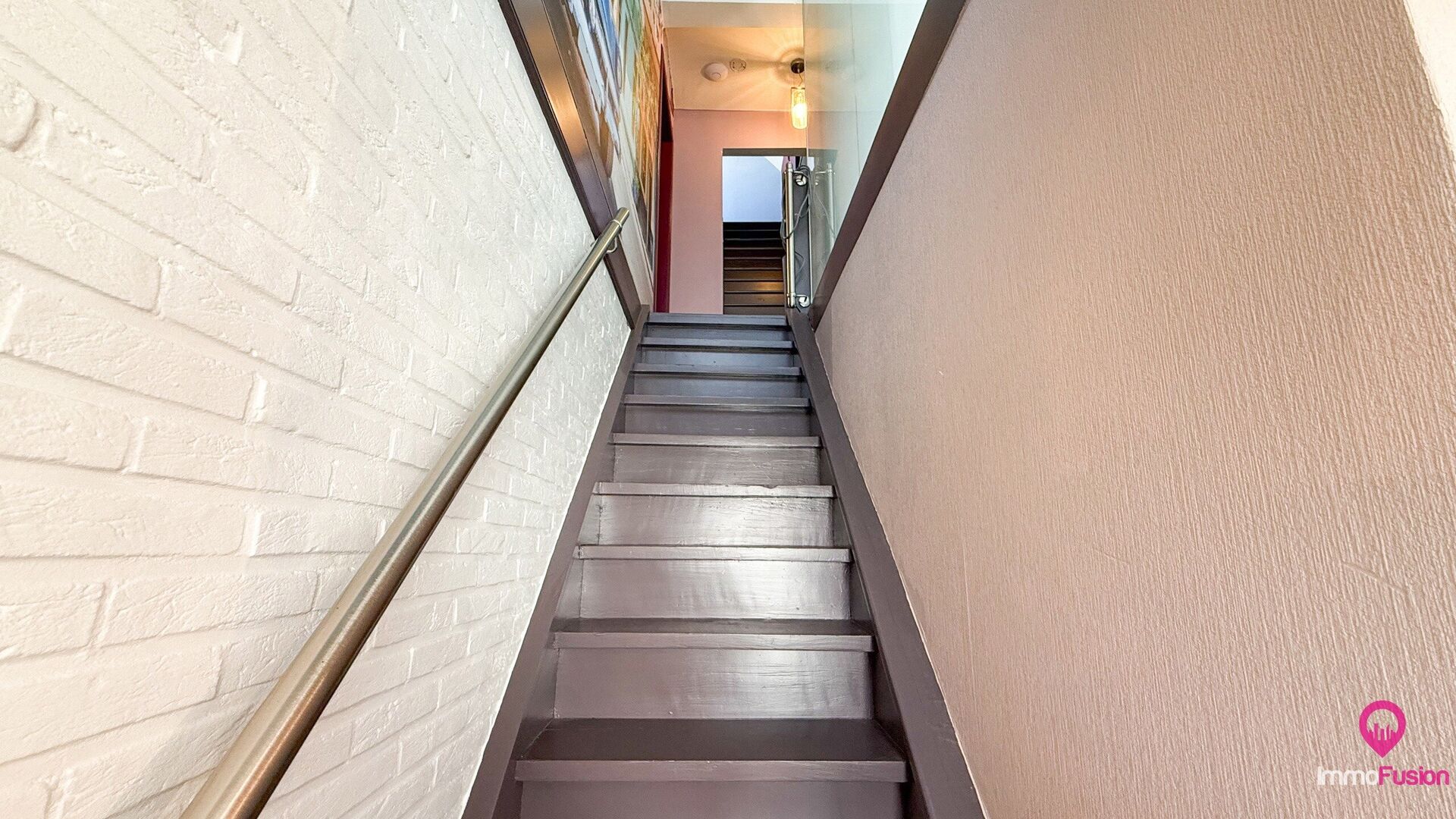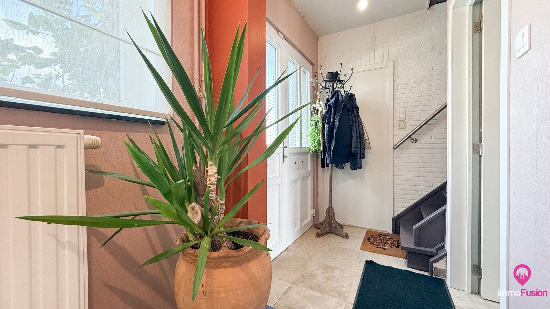 Via de rechterkant van de woning kan je de voordeur terugvinden waar de inkomhal zich bevindt met de trap naar de bovenverdieping. Daarnaast vind je hier meteen de 1e badkamer, met ruime inloopdouche, dubbele lavabo en toilet.