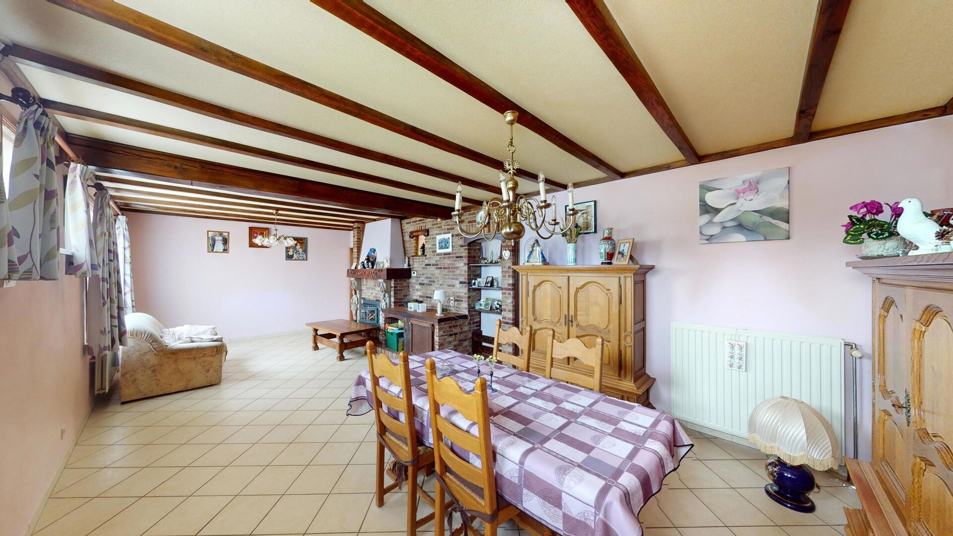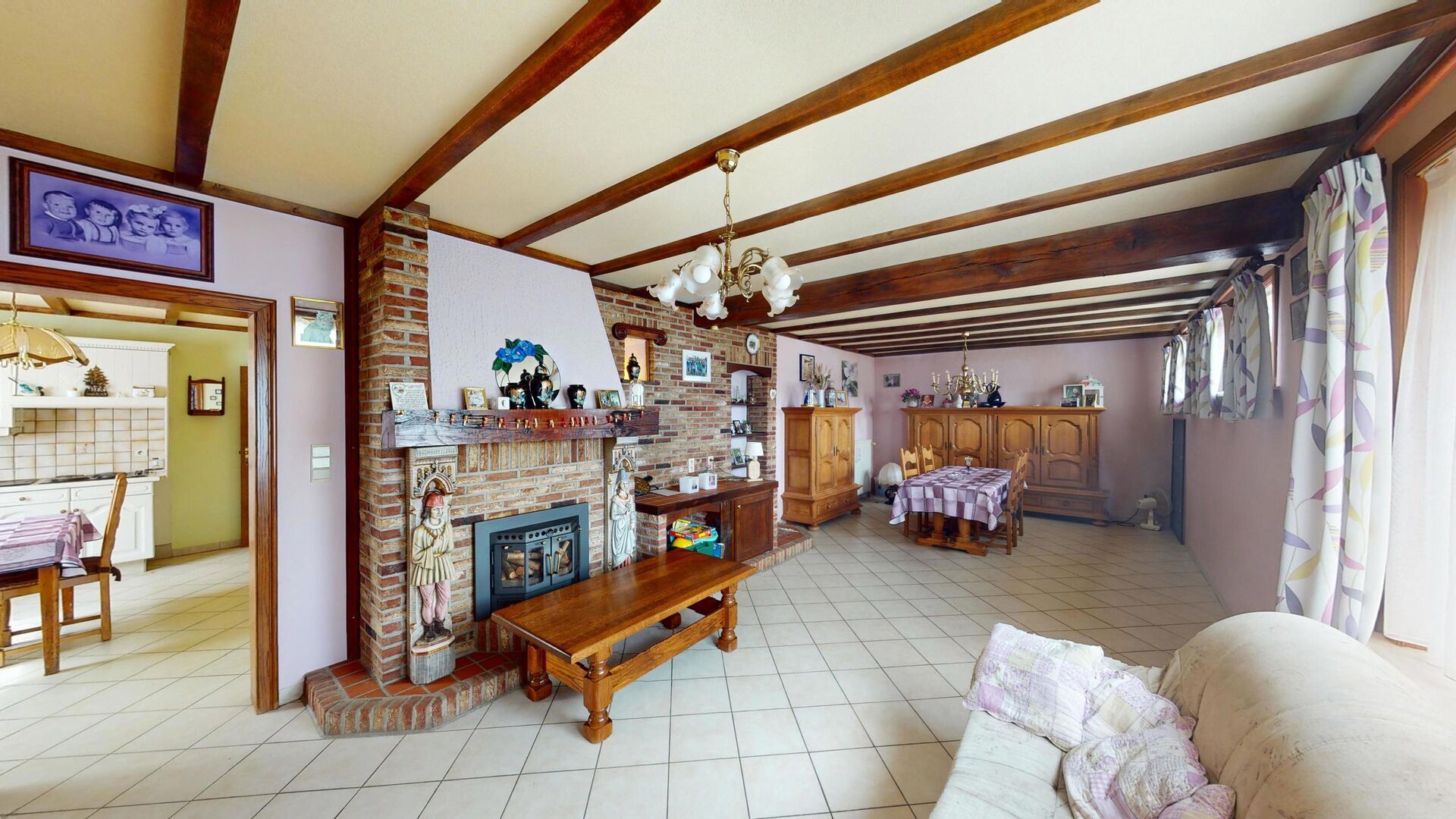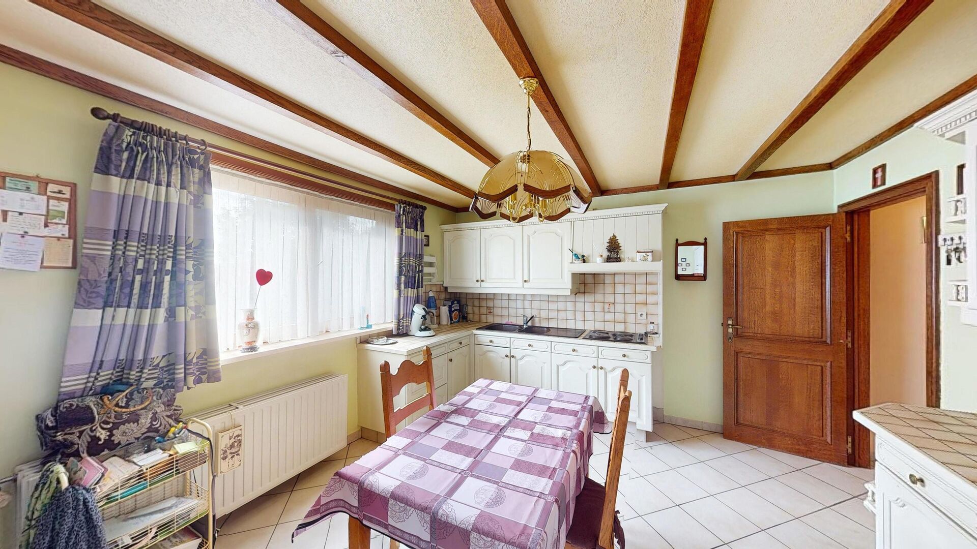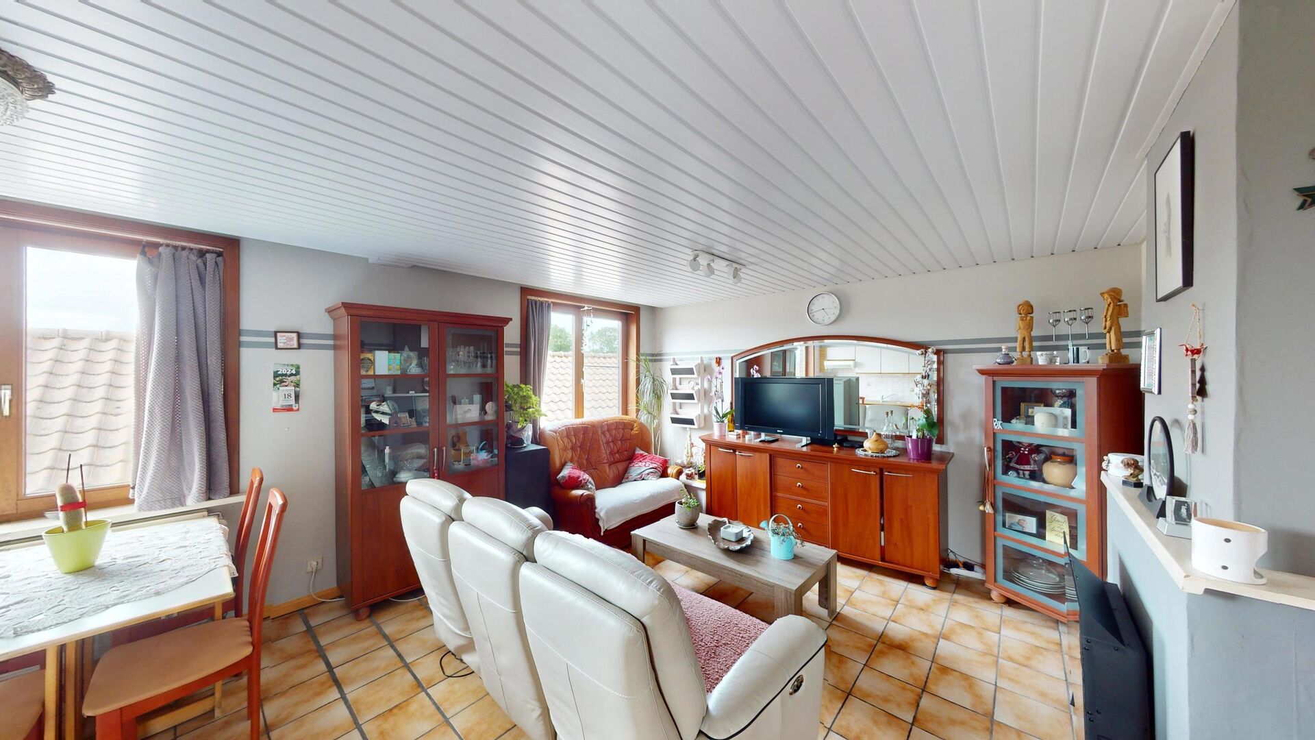 Op het gelijkvloers bevind zich een appartement met ruime leefruimte bestaande uit zithoek en eetkamer. Hier kan u genieten van een haardvuur.