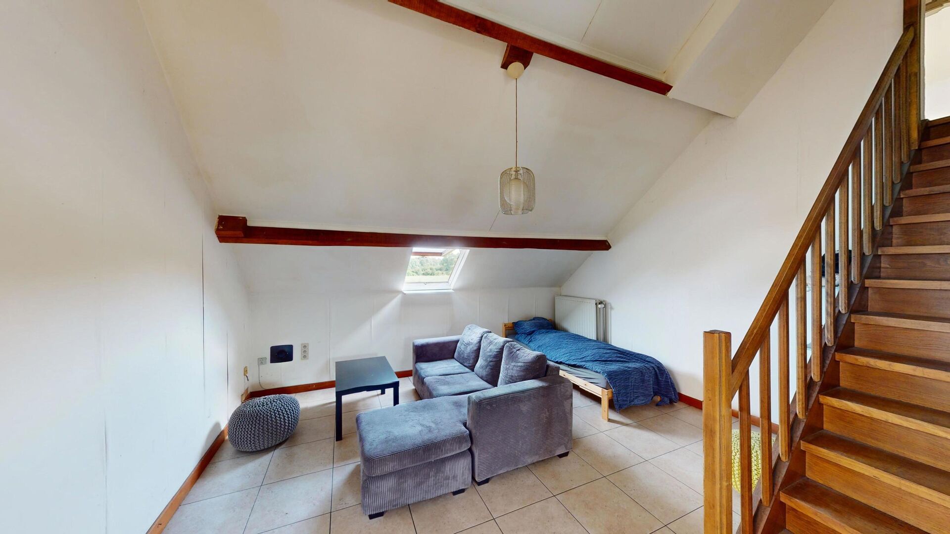 Op de bovenverdieping hebben we en duplex appartement met woonkamer, kitchenette, een ruime slaapkamer en een badkamer met ligbad en toilet.