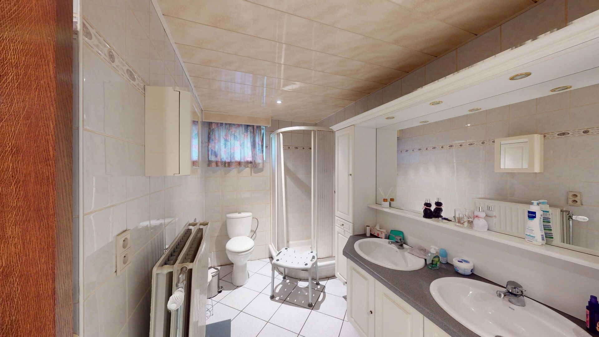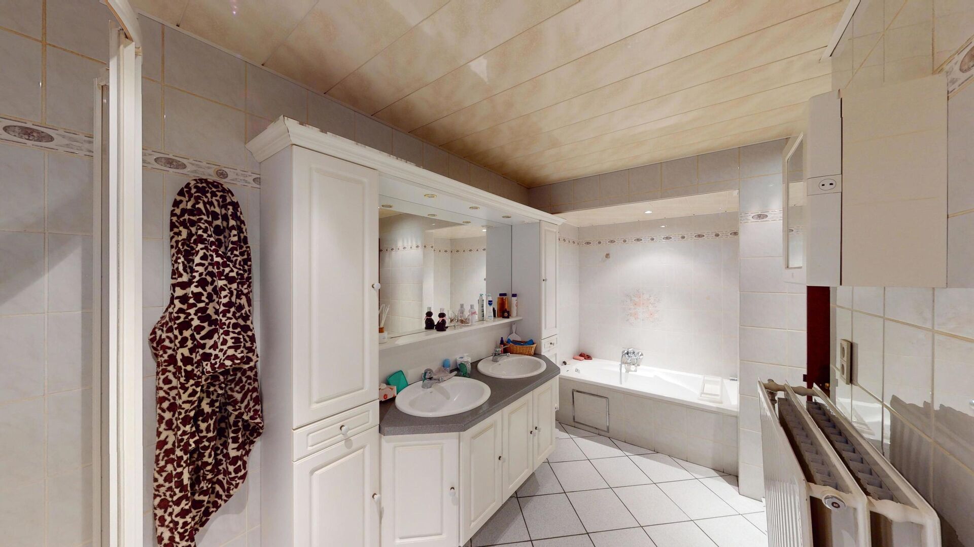 Dit appartement is voorzien van een badkamer met ligbad, een aparte douche en een dubbele lavabo en het toilet.