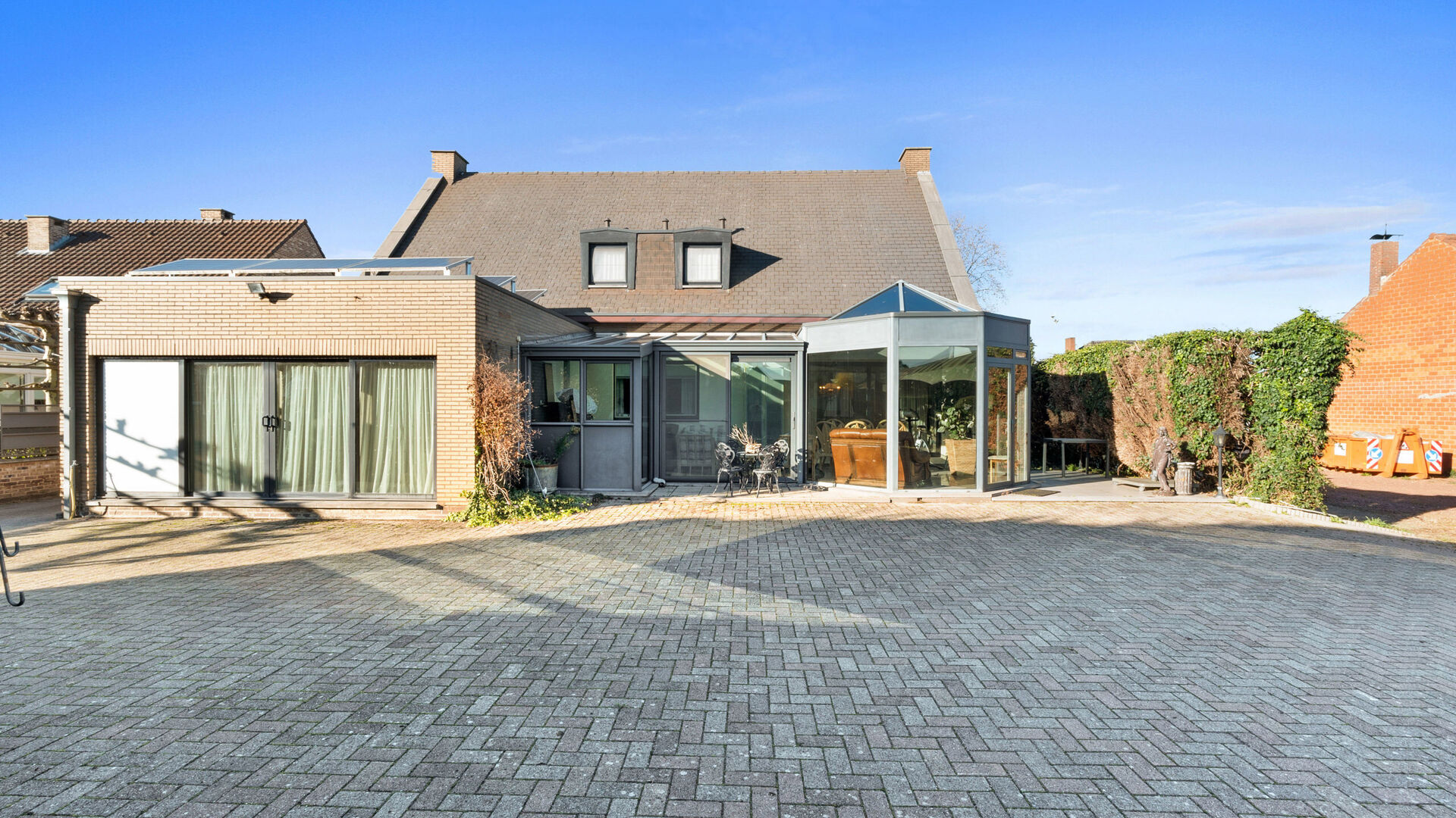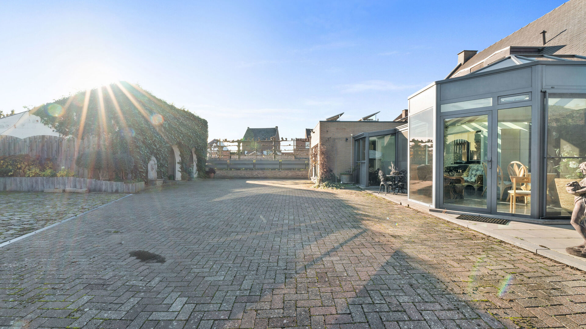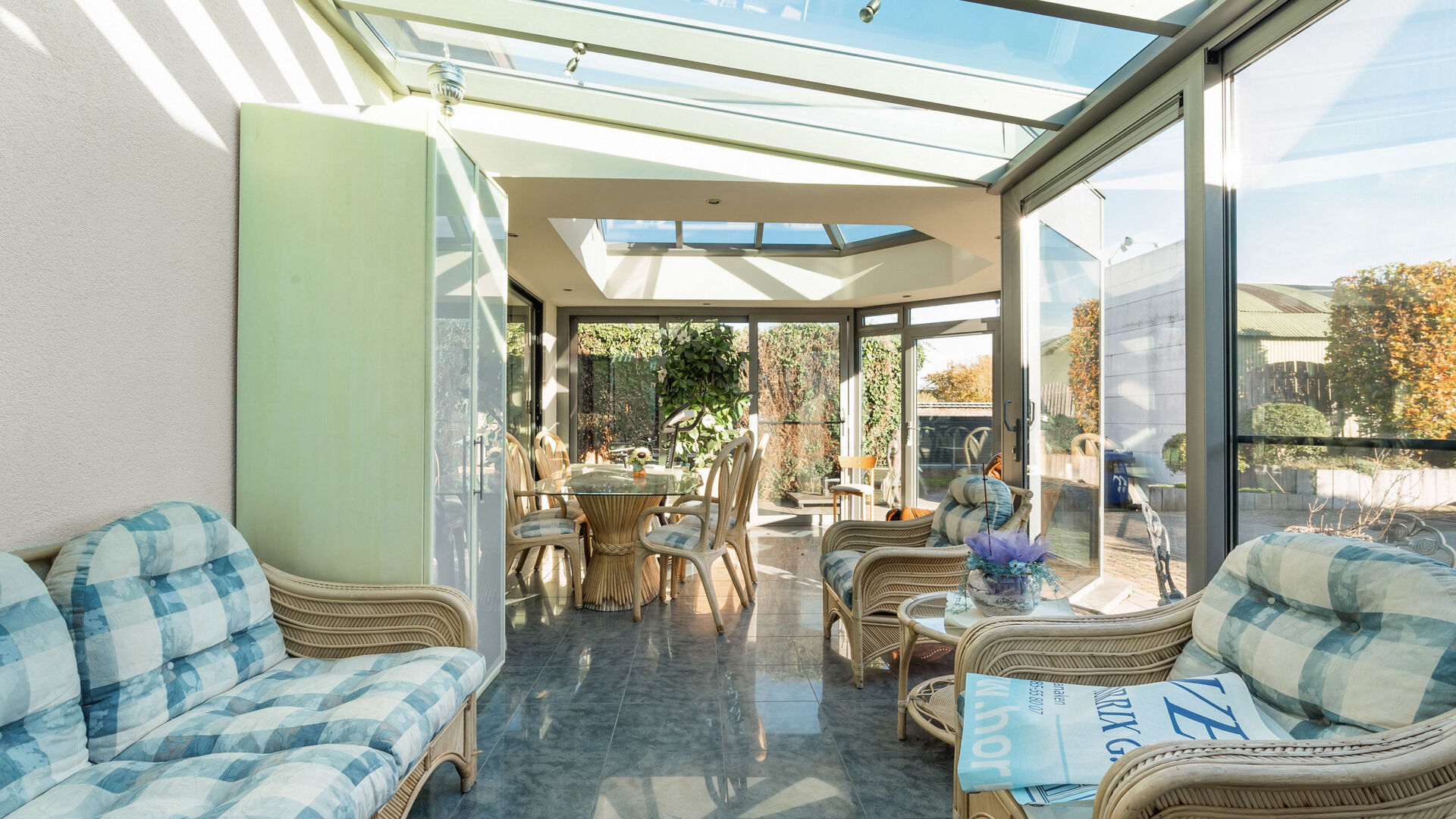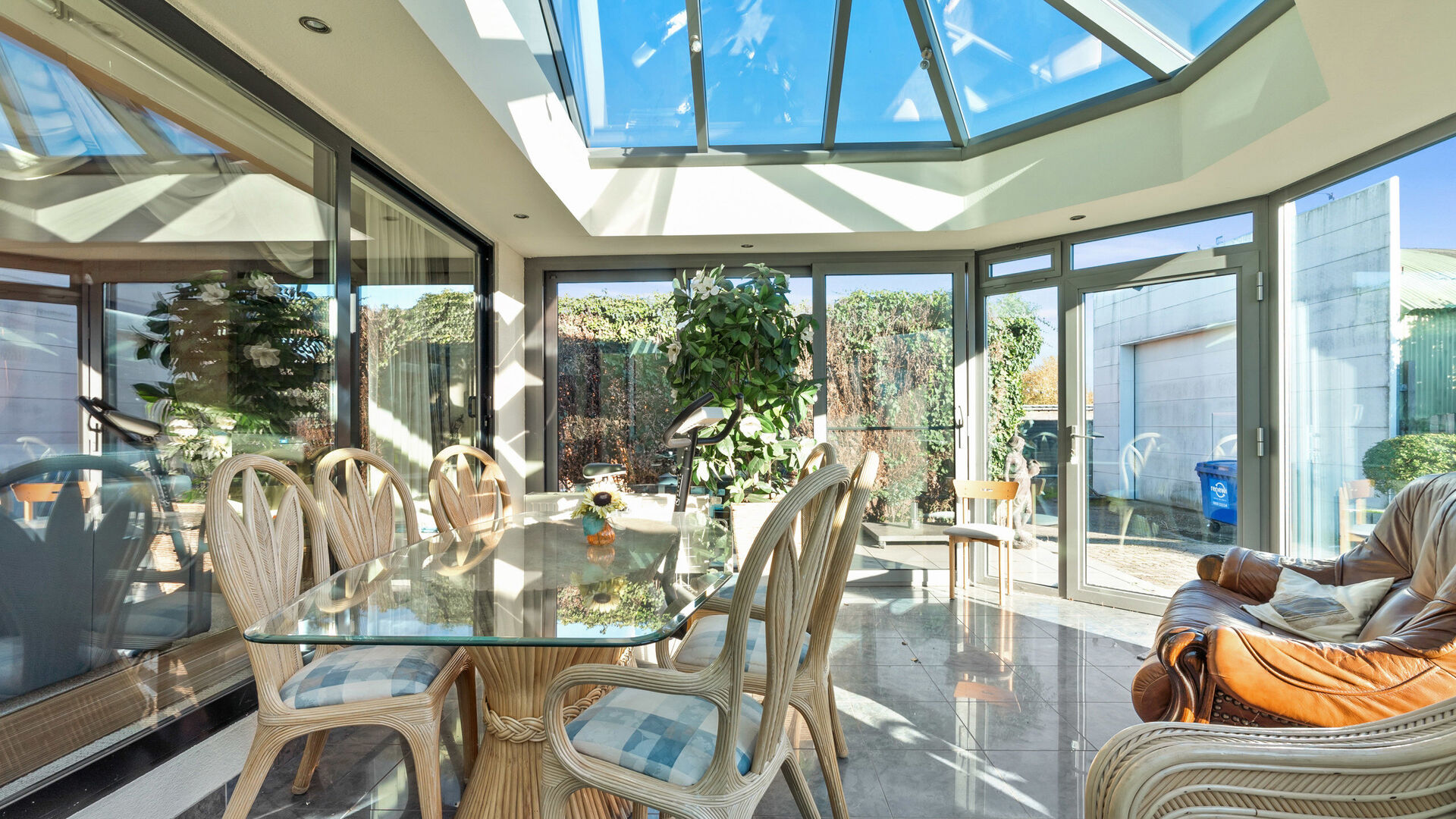 - Ruime veranda met zonwerende beglazing als dak