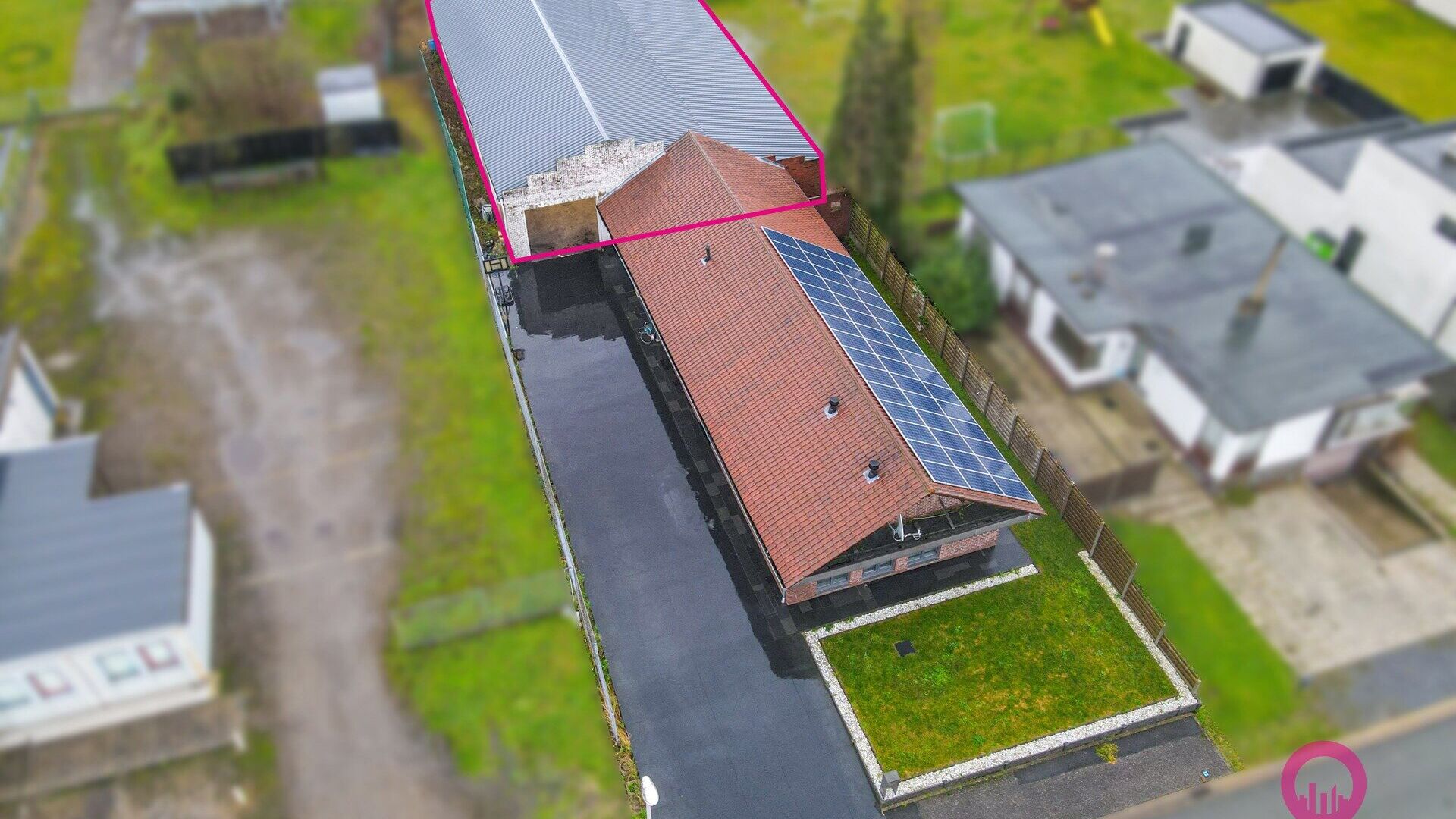 De inrit werd netje gebetonneerd. . De loods kreeg een volledig nieuw dak.