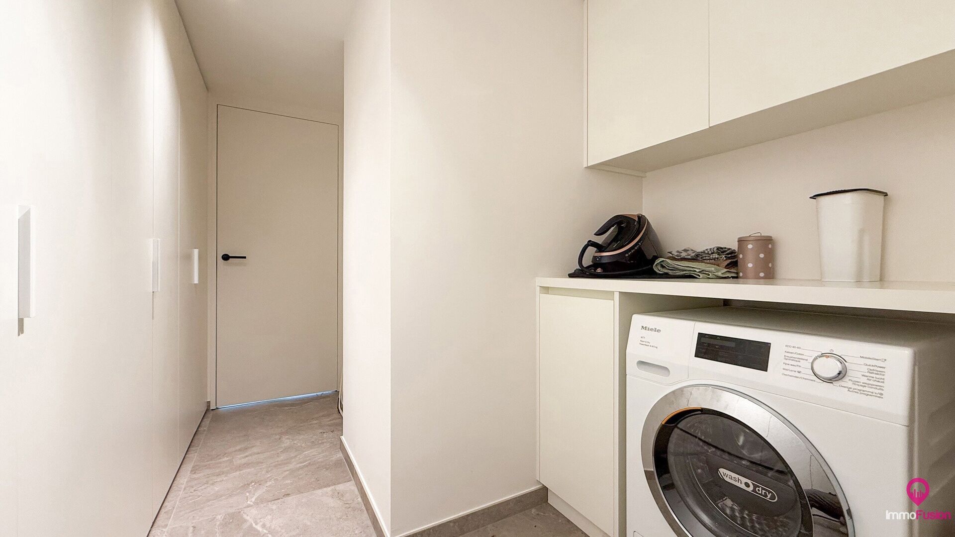 Naast de leef- en slaapvertrekken beschikt het penthouse over een aparte bureelruimte, ideaal om van thuis uit te werken in alle rust. Ook zijn er overal inbouwkasten voorzien, wat niet alleen praktisch is maar ook zorgt voor een minimalistische en stijlvolle uitstraling.