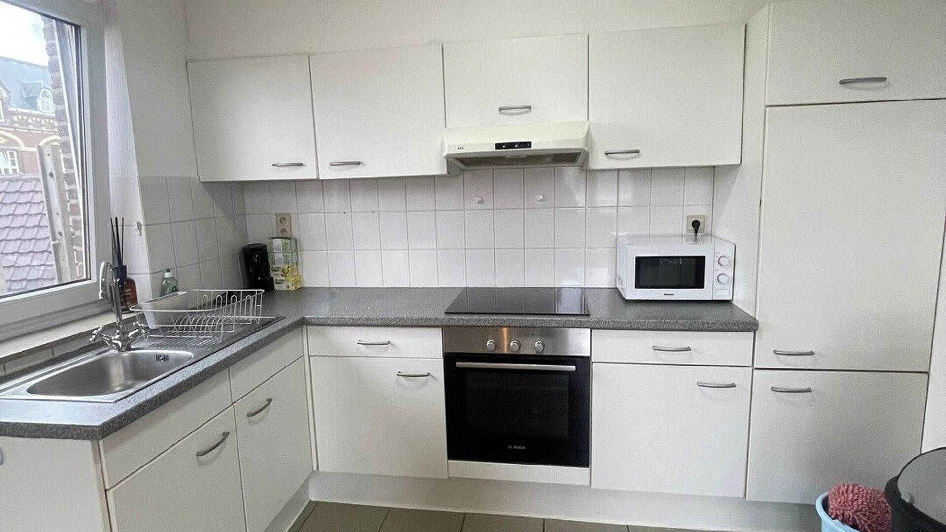 De moderne keuken werd recent vernieuwd en is uitgerust met een gootsteen, heteluchtoven, keramische kookplaat, dampkap en koelkast.