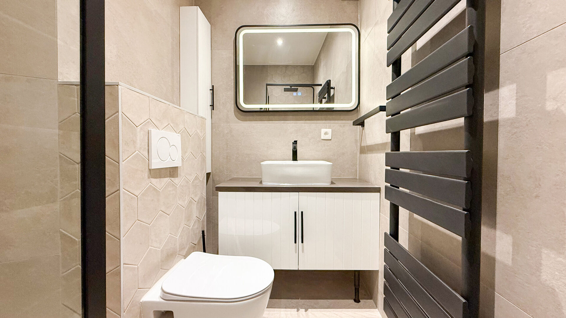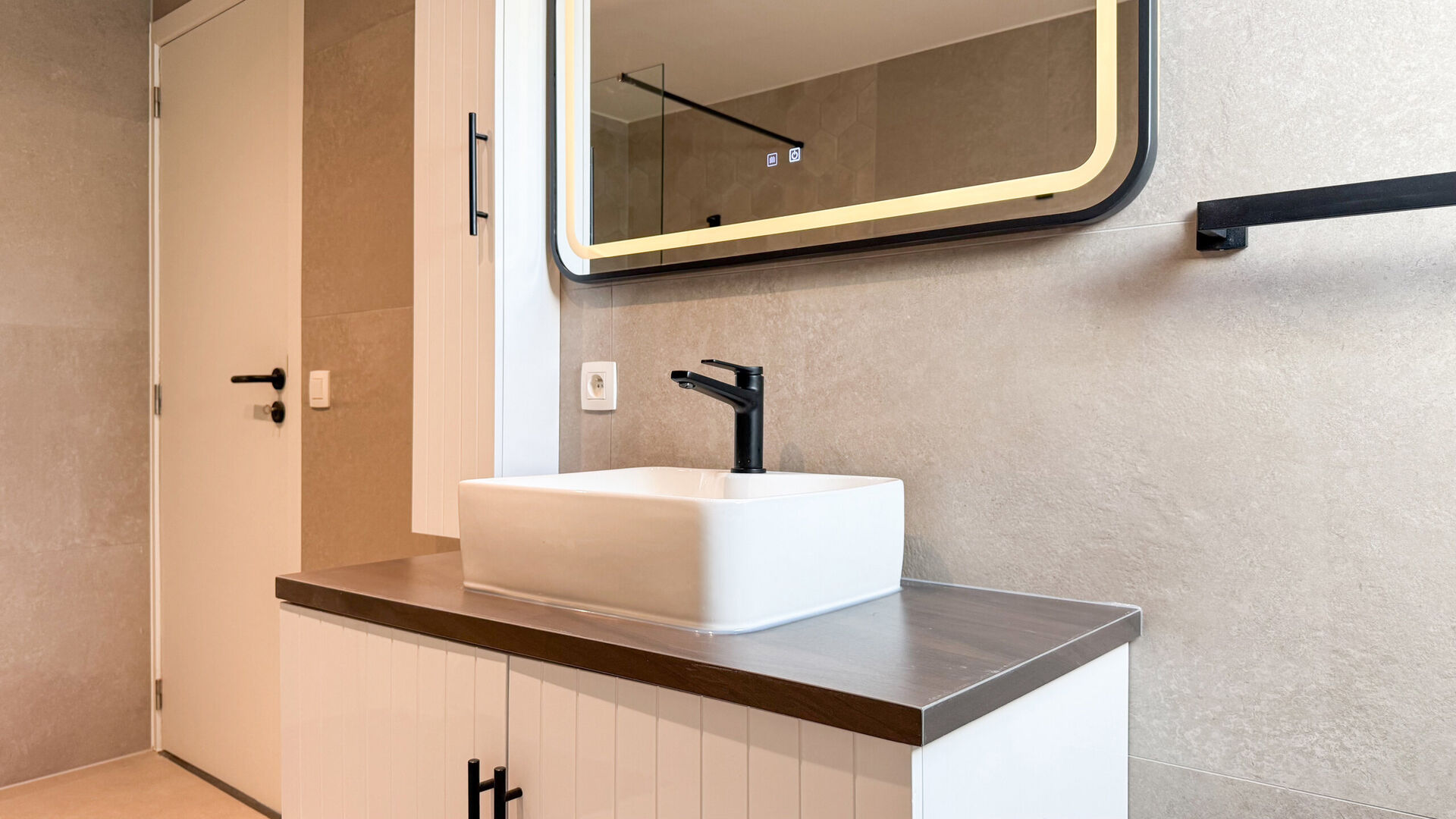 - Nieuwe leidingen, elektriciteit, vloeren, dak, keuken en badkamer;