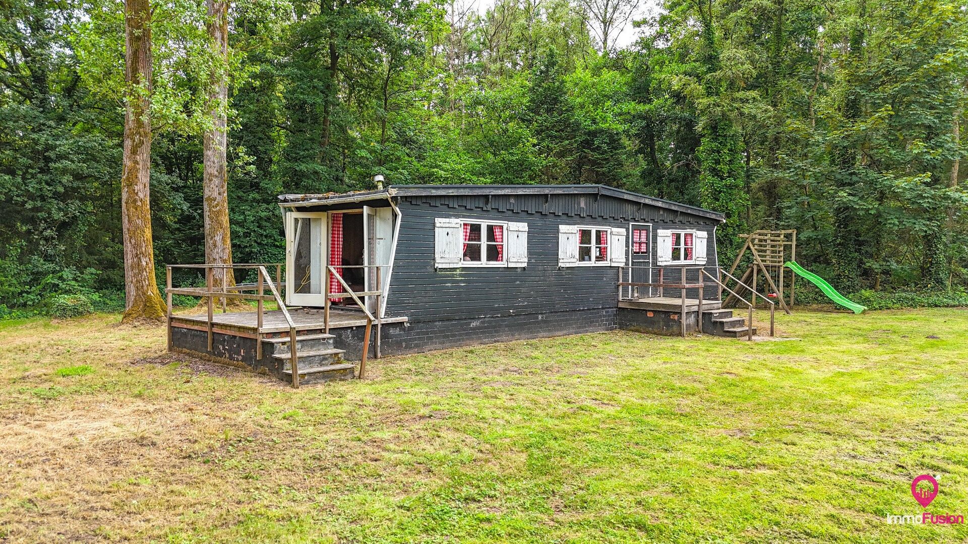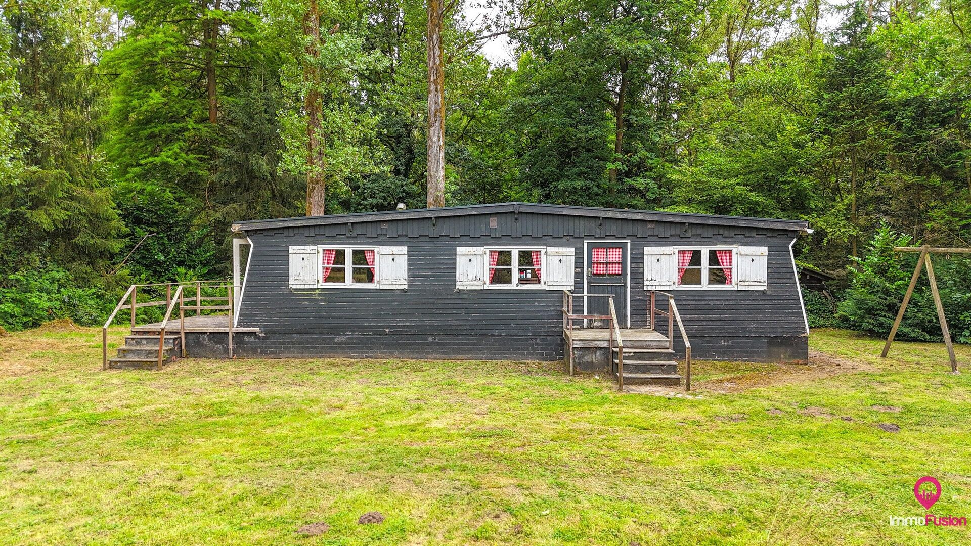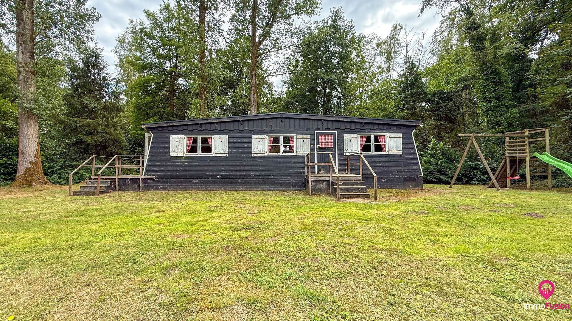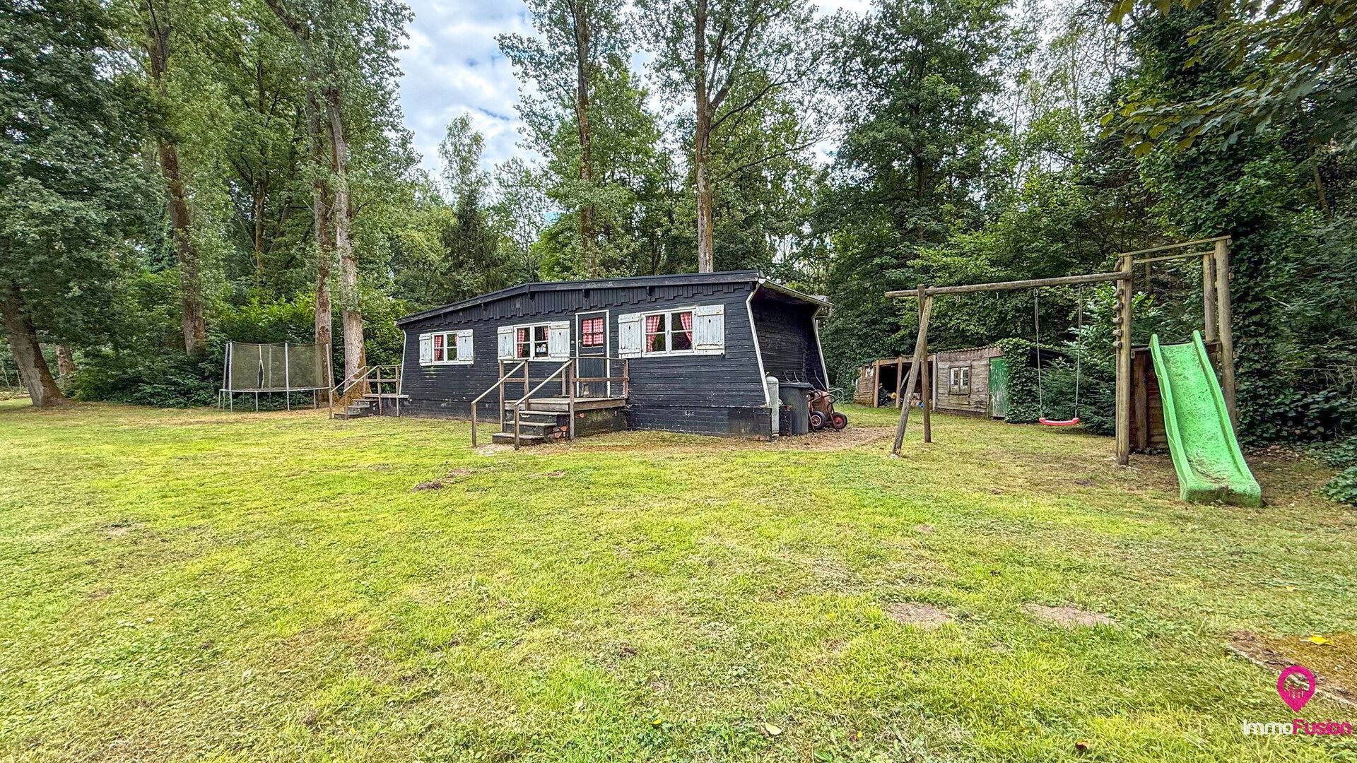 De charmante, vergunde chalet op het terrein is onmiddellijk bruikbaar en vormt het ideale toevluchtsoord voor wie op elk moment van het jaar wil genieten van vakantie in eigen land.