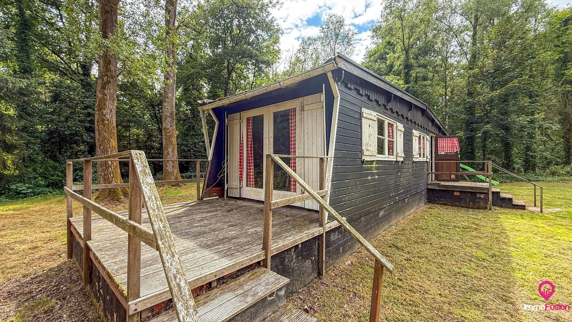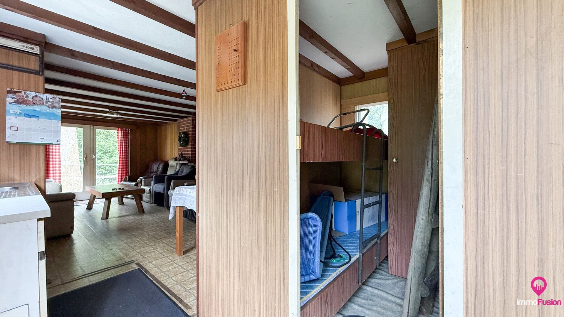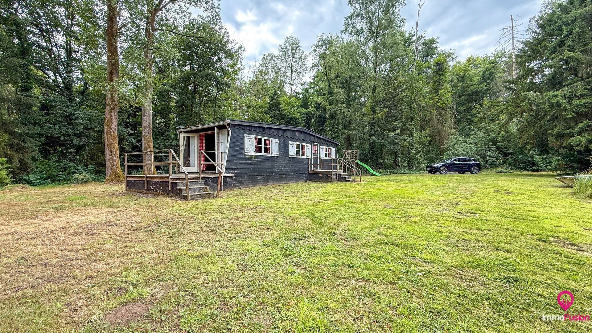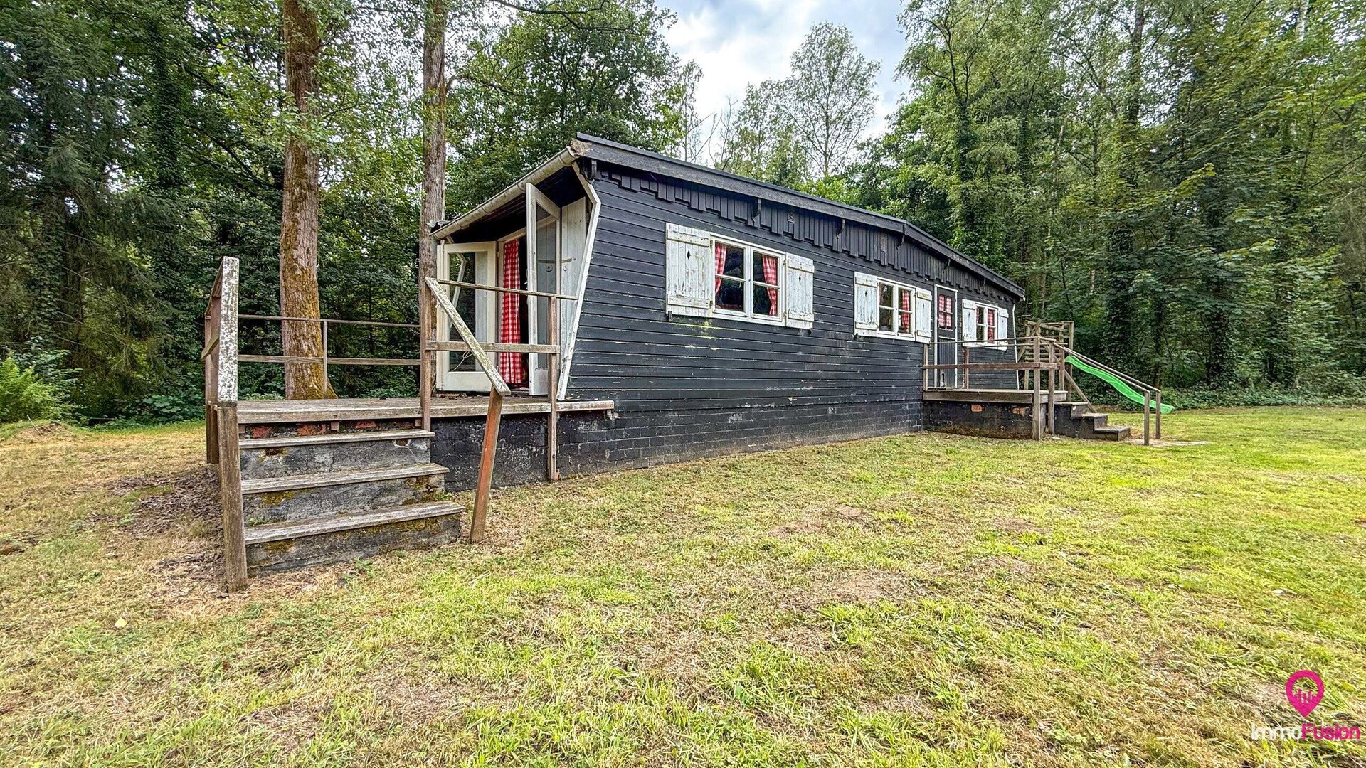 De charmante, vergunde chalet op het terrein is onmiddellijk bruikbaar en vormt het ideale toevluchtsoord voor wie op elk moment van het jaar wil genieten van vakantie in eigen land.